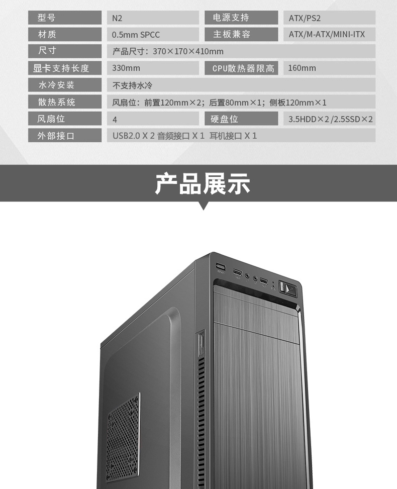 타이케 중전 N2 데스크탑 PC 컴퓨터 본체 케이스 ATX 대형 보드 롱 그래픽 카드 사무용/가정용 케이스 데스크탑 케이스