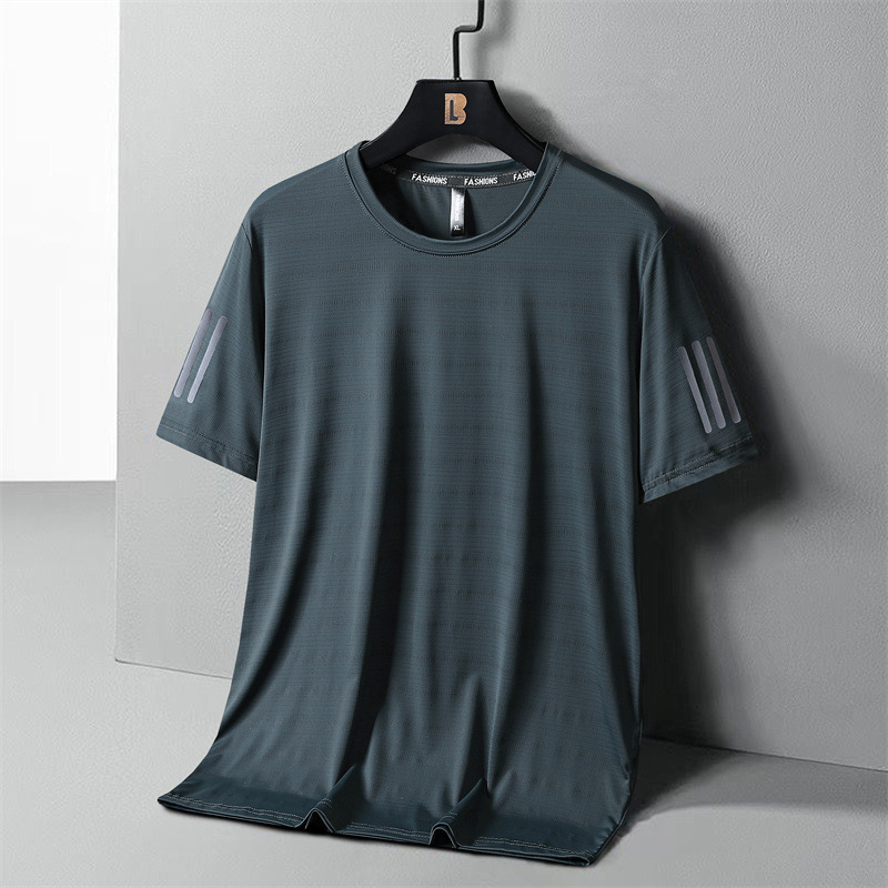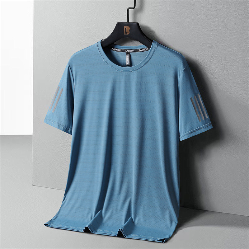 여름 아이스 실크 반팔 티셔츠 남성용 느슨한 속건성 의류 젊은 남성용 얇은 스포츠 티셔츠 플러스 사이즈 남성용 반팔스토어 가기