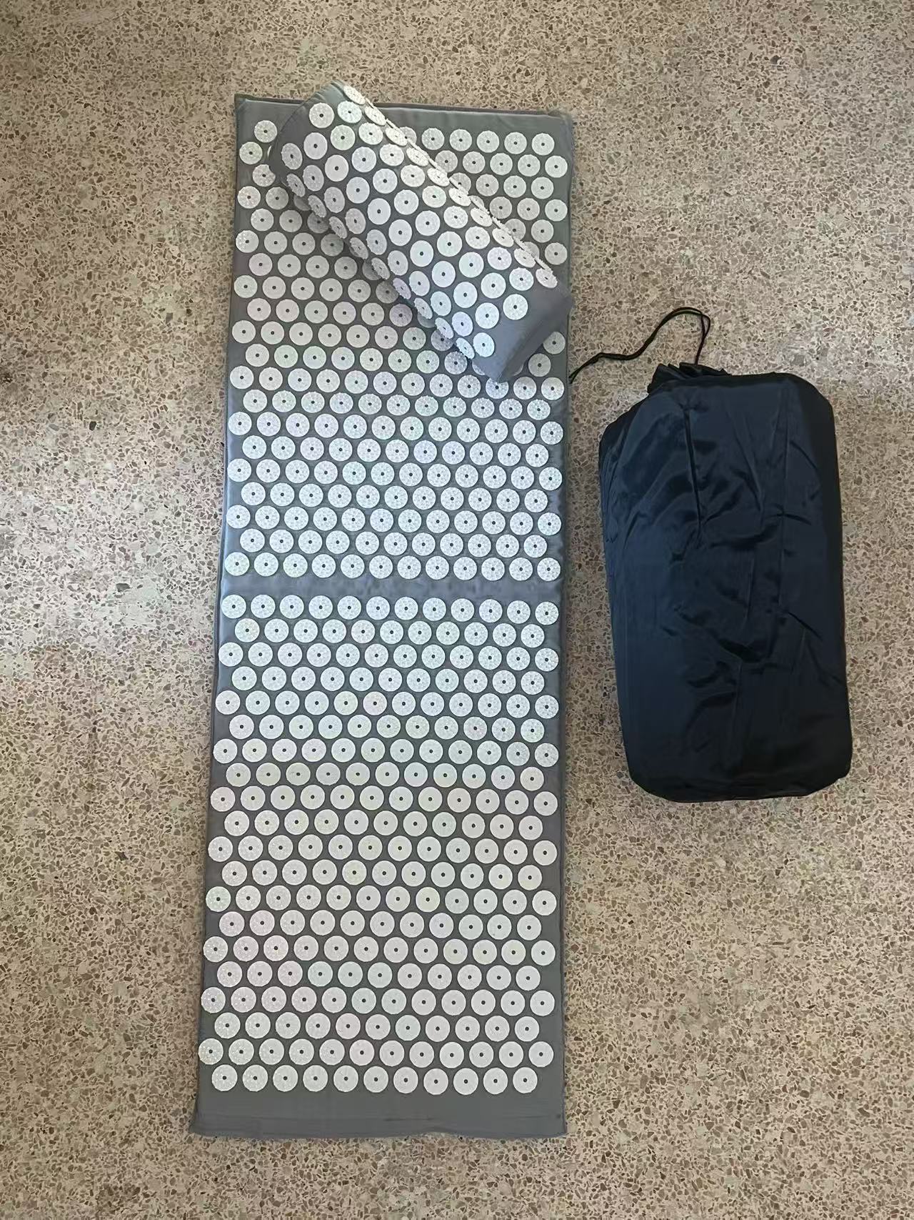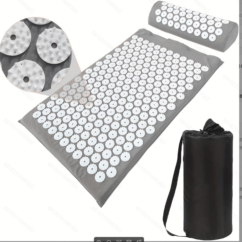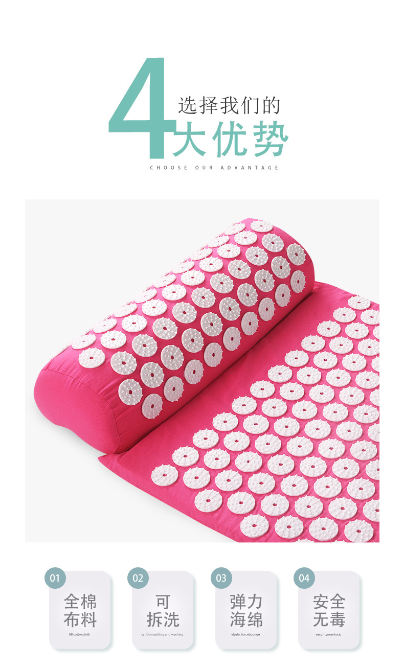 产品名称: 针刺按摩垫枕 装箱数量:30 条 彩盒装 纸箱规格:85*52*85 材质:百分百全棉+ABS塑料钉+环保出口18D高密度海绵 产品规格:65*41 枕头:38*15*10 单垫重量:385克 单枕:154克 垫子枚数:230枕头枚数 :59/66 产品颜色 : 粉 紫 兰 绿 深绿色 黑 灰 产品功能:按摩 健身 瑜伽