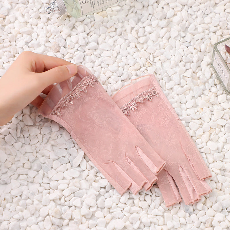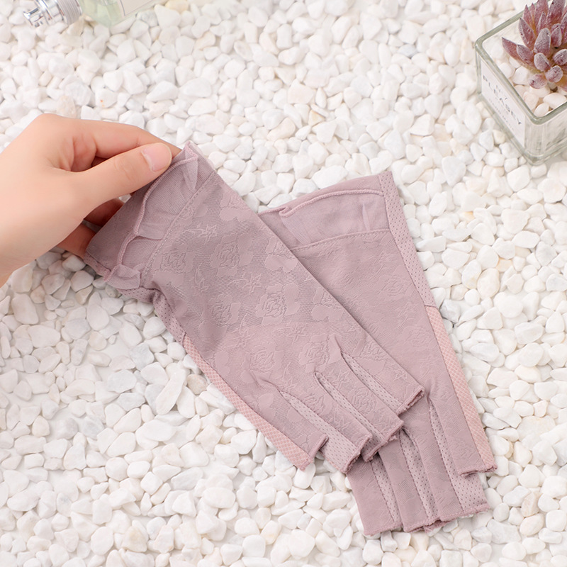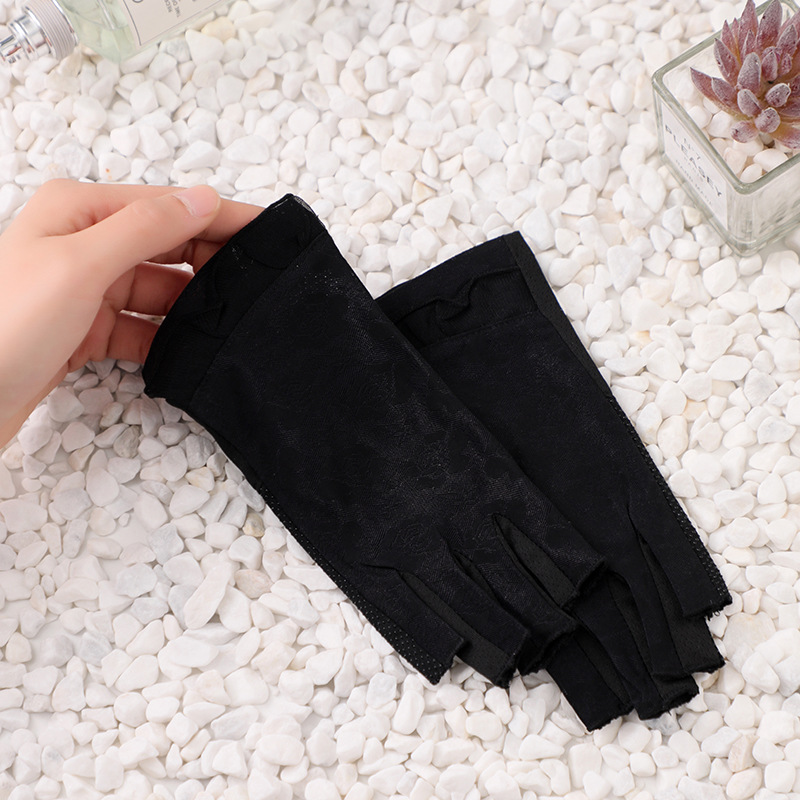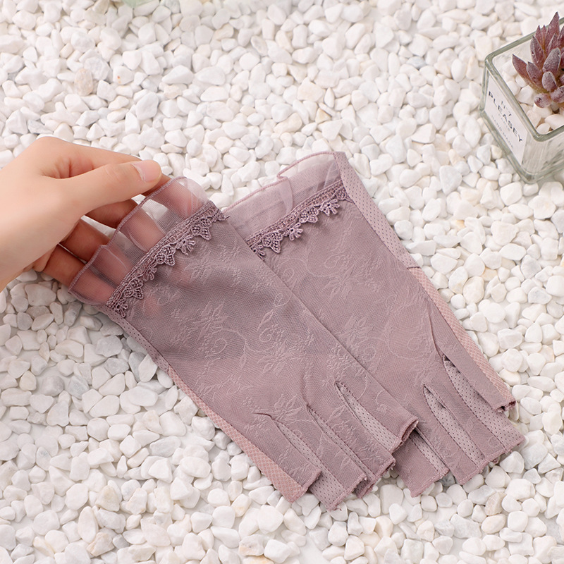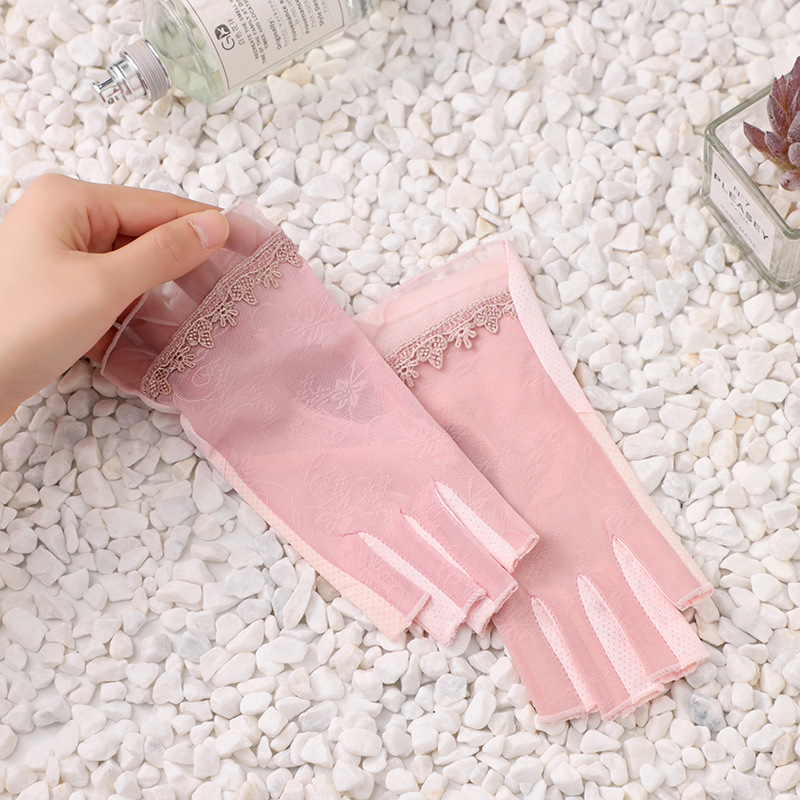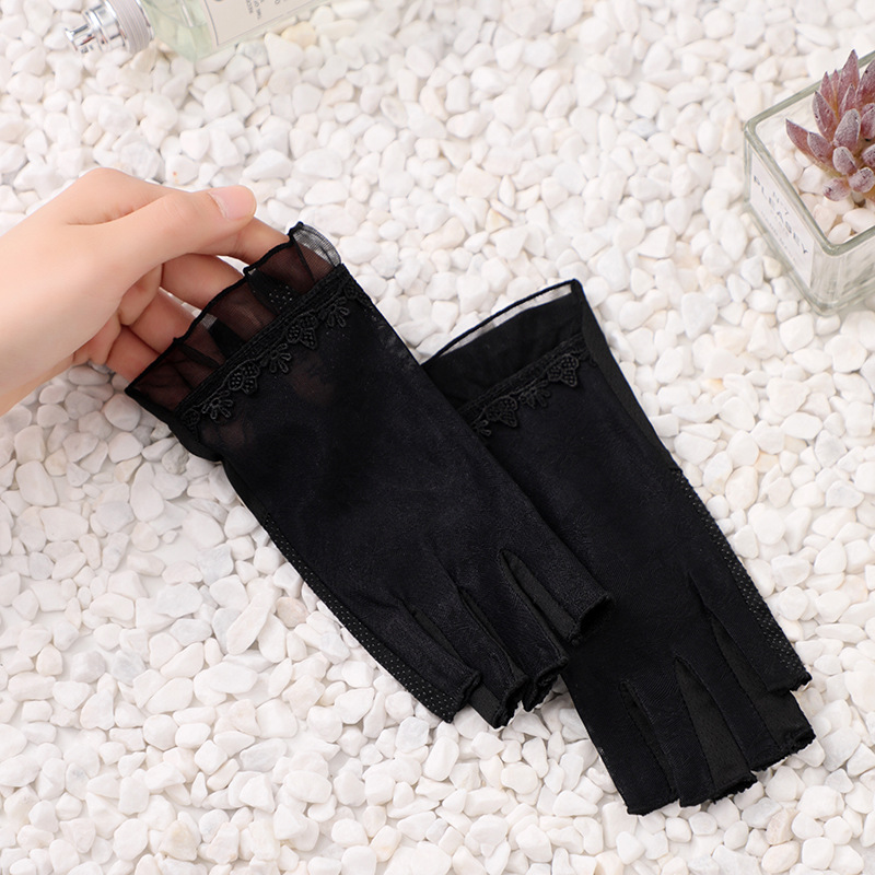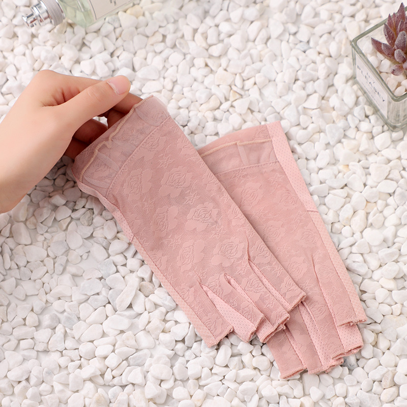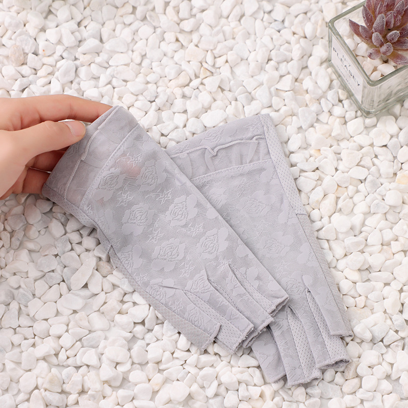 반 손가락 장갑 여성용 울트라 씬 아이스 실크 탄성 레이스 미끄럼 방지 반 손가락 장갑 운전 및 승마용