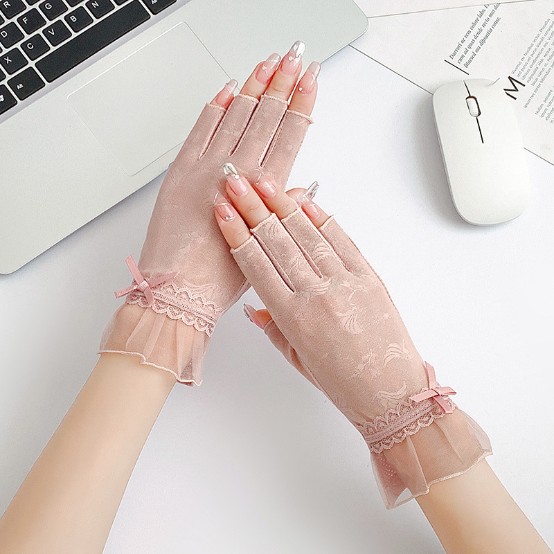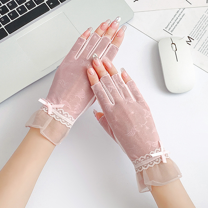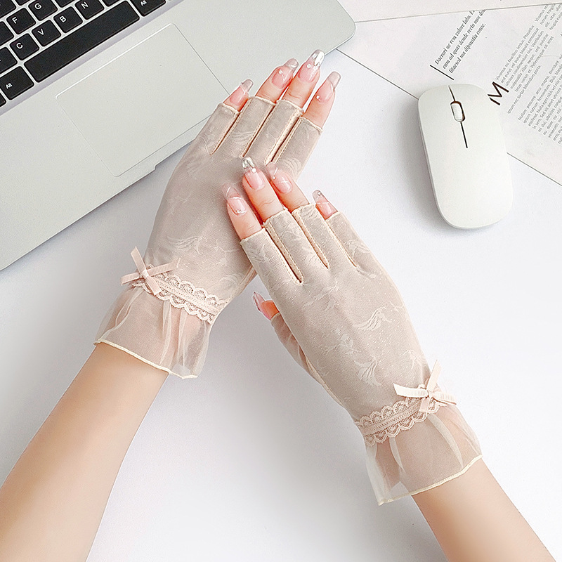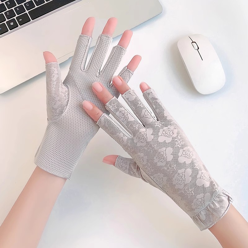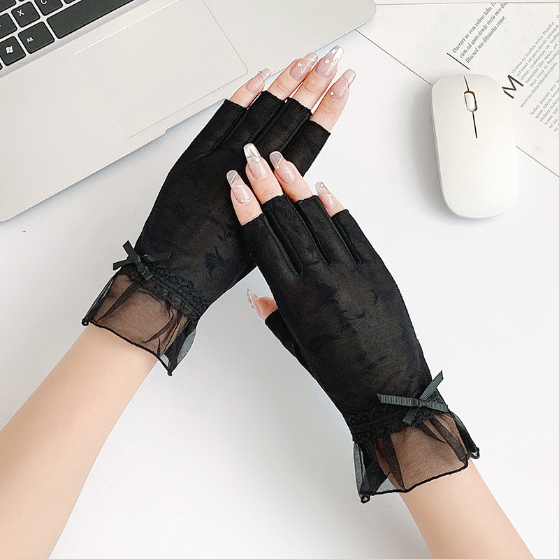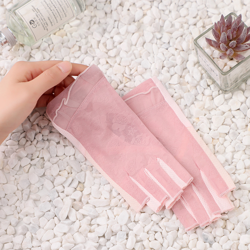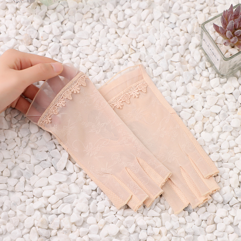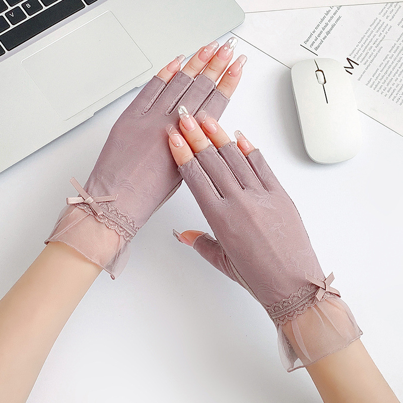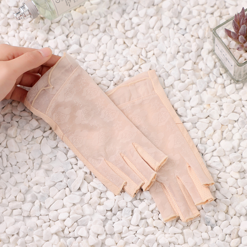 반 손가락 장갑 여성용 울트라 씬 아이스 실크 탄성 레이스 미끄럼 방지 반 손가락 장갑 운전 및 승마용