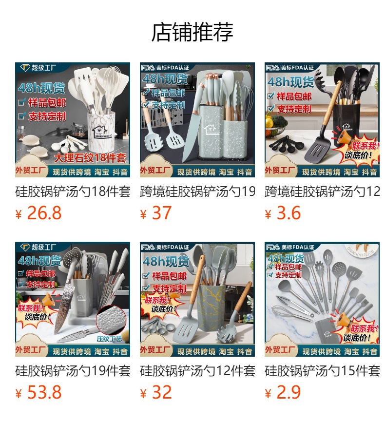 실리콘 주걱 수프 스푼 12 개 논스틱 실리콘 주걱 고온 저항 실리콘 주방 용품 세트 재고 도매