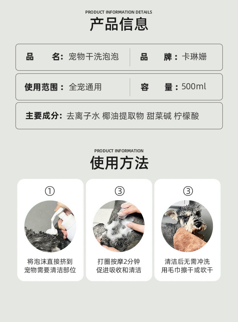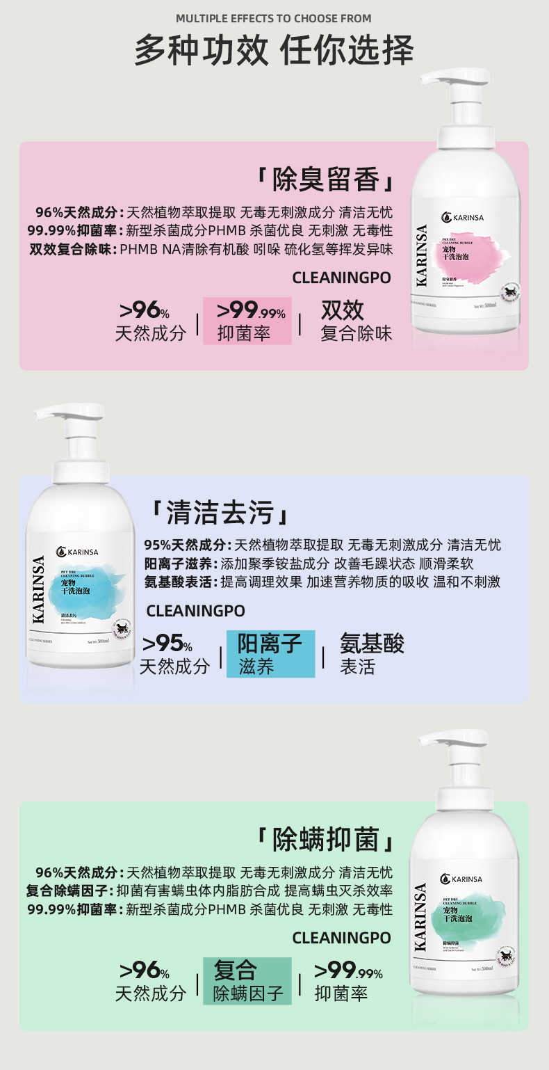 애완 동물 드라이 클리닝 노 워시 폼 개 바디 비누 개 샴푸 바디 비누 고양이 목욕 세척 및 보호를위한 특수 목욕 솔루션