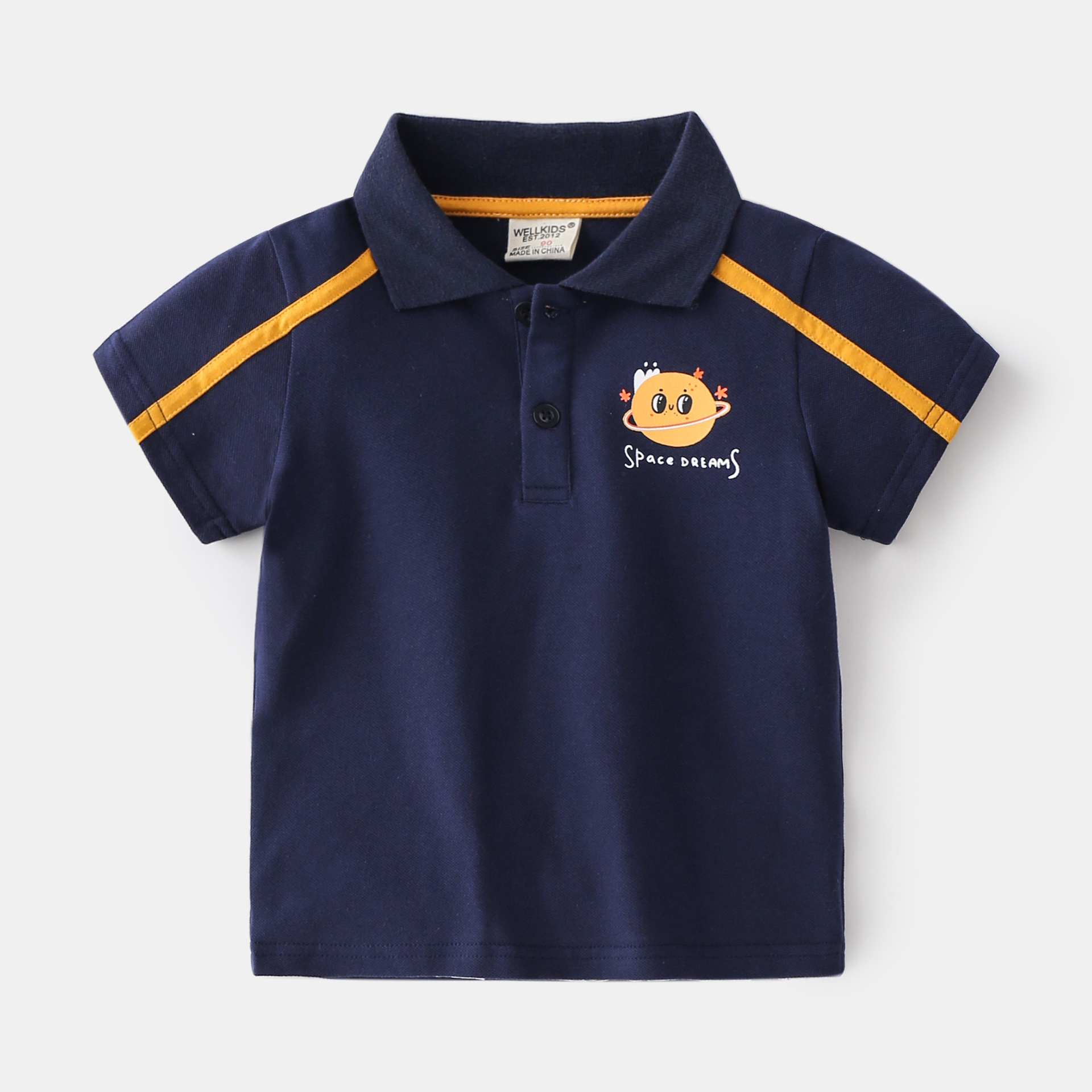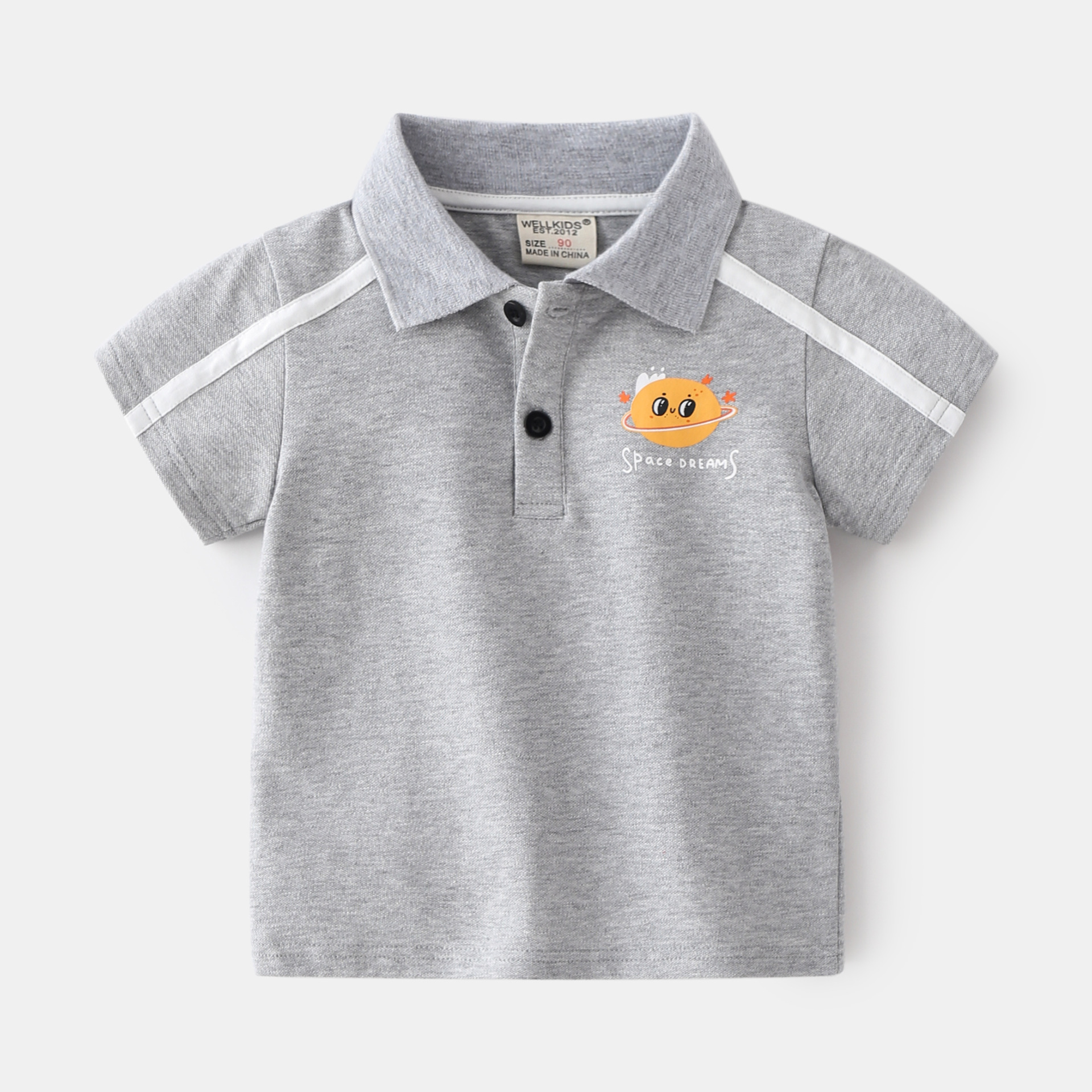 여름 소년 반팔 폴로 셔츠 귀여운 만화 수 놓은 옷깃 탑 유행 한국 스마일 캐주얼 티셔츠