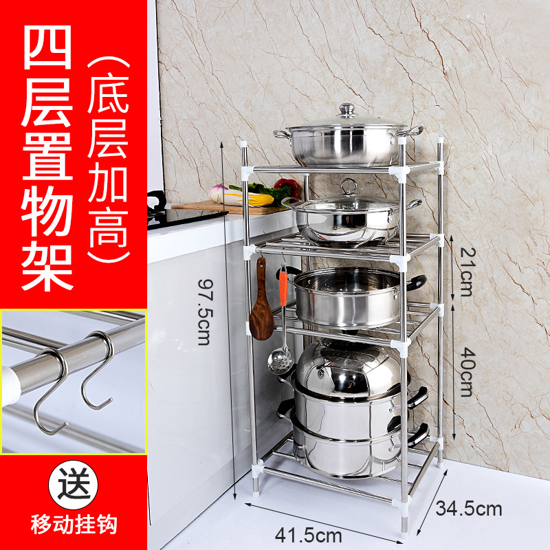 스테인레스 스틸 분지 랙 다층 4 코너 주방 욕실 바닥 랙 냄비 스토리지 랙 크로스 보더 아마존스토어 가기