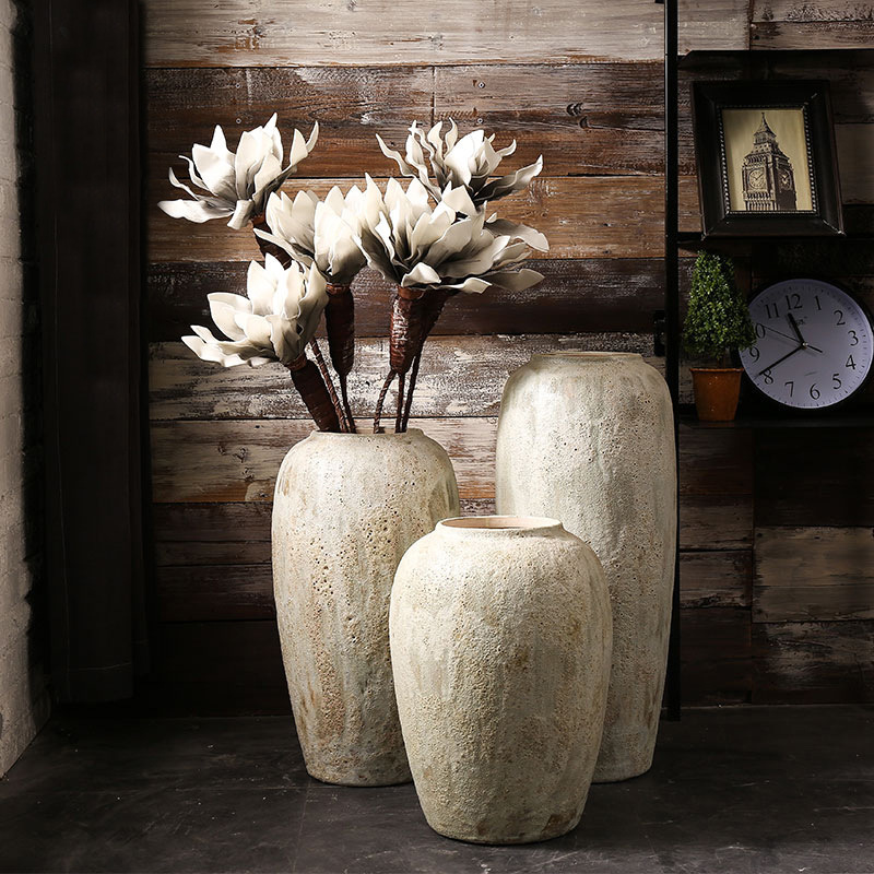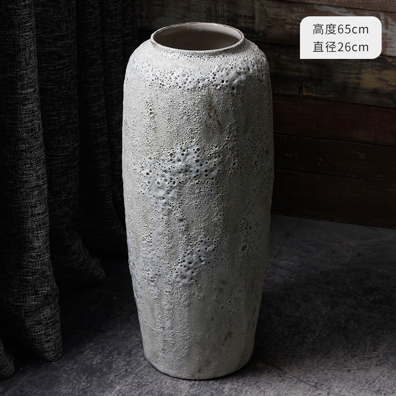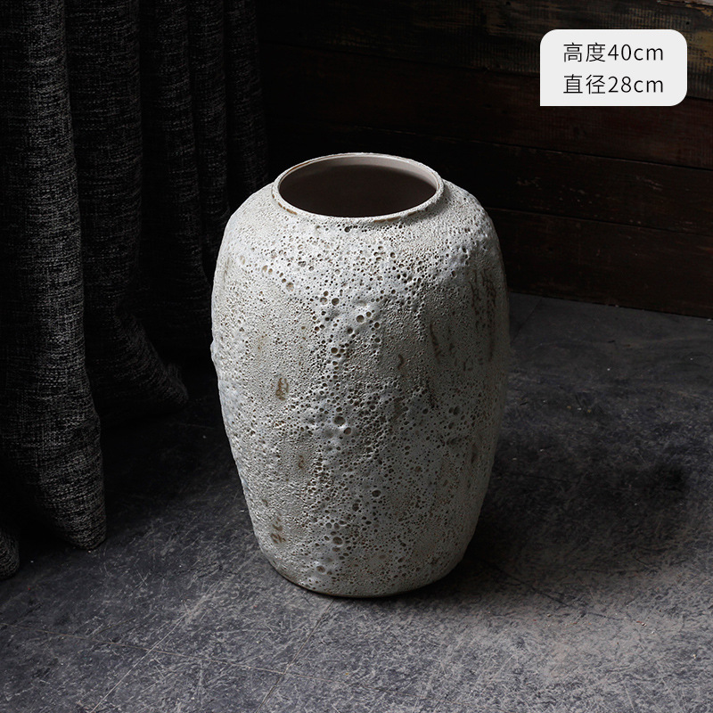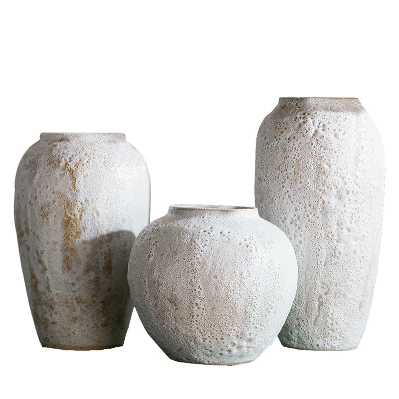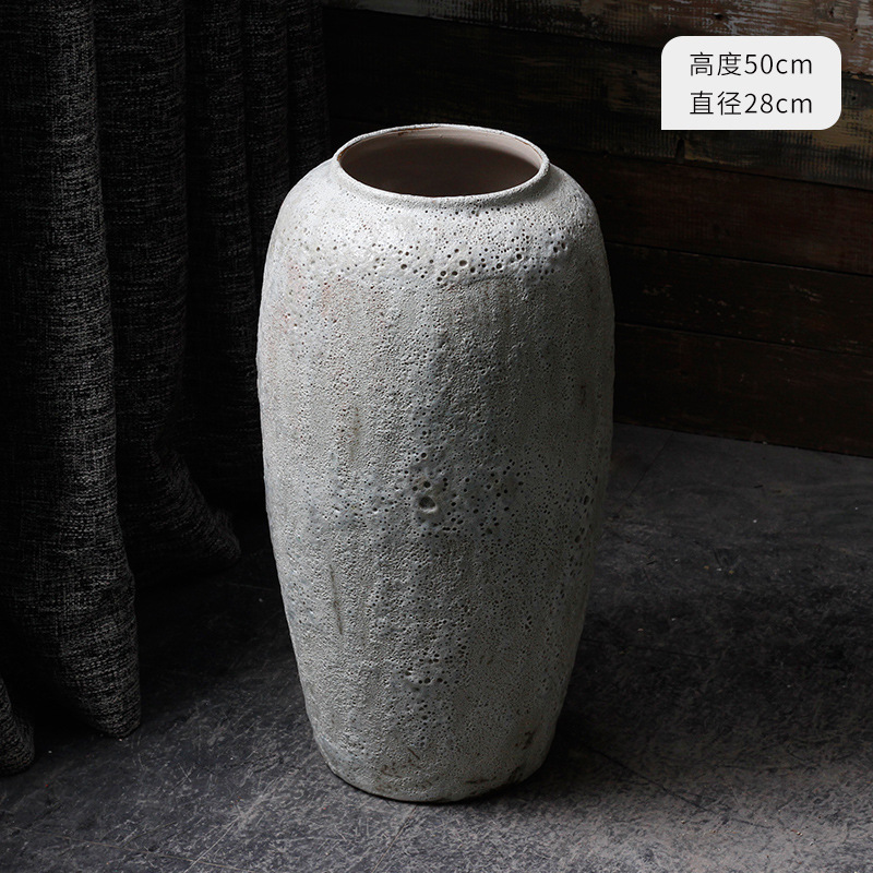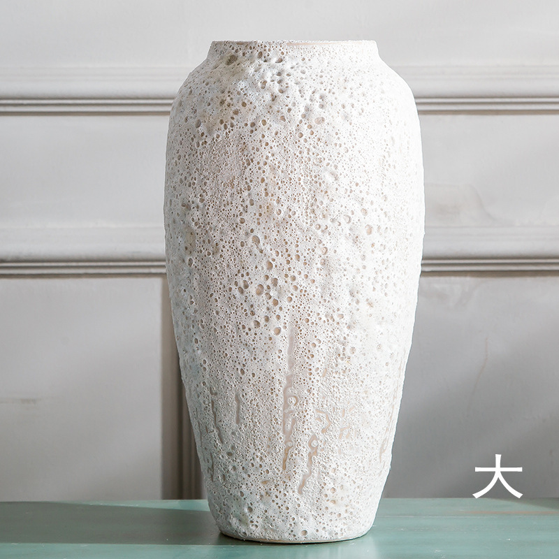 현대 간단한 말린 꽃 세라믹 꽃병 중국 장식품 빈티지 신선한 스타일 수제 흰색 거친 도자기 냄비 도자기스토어 가기