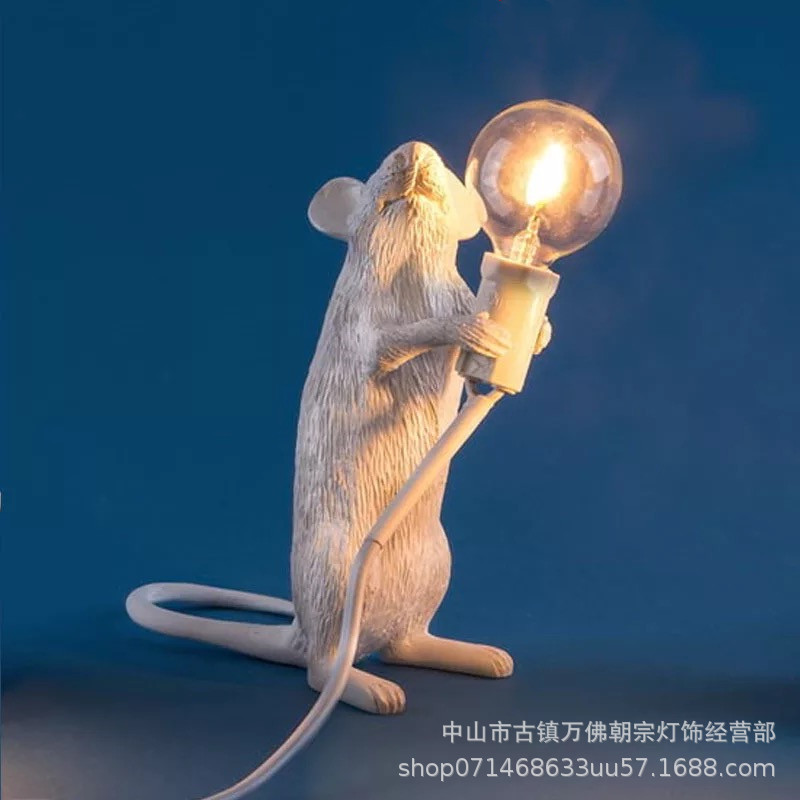 쥐 테이블 램프 북유럽 동물 조명 거실 식당 침실 의류 매장 만화 쥐 레진 침대 옆 램프 분위기 조명