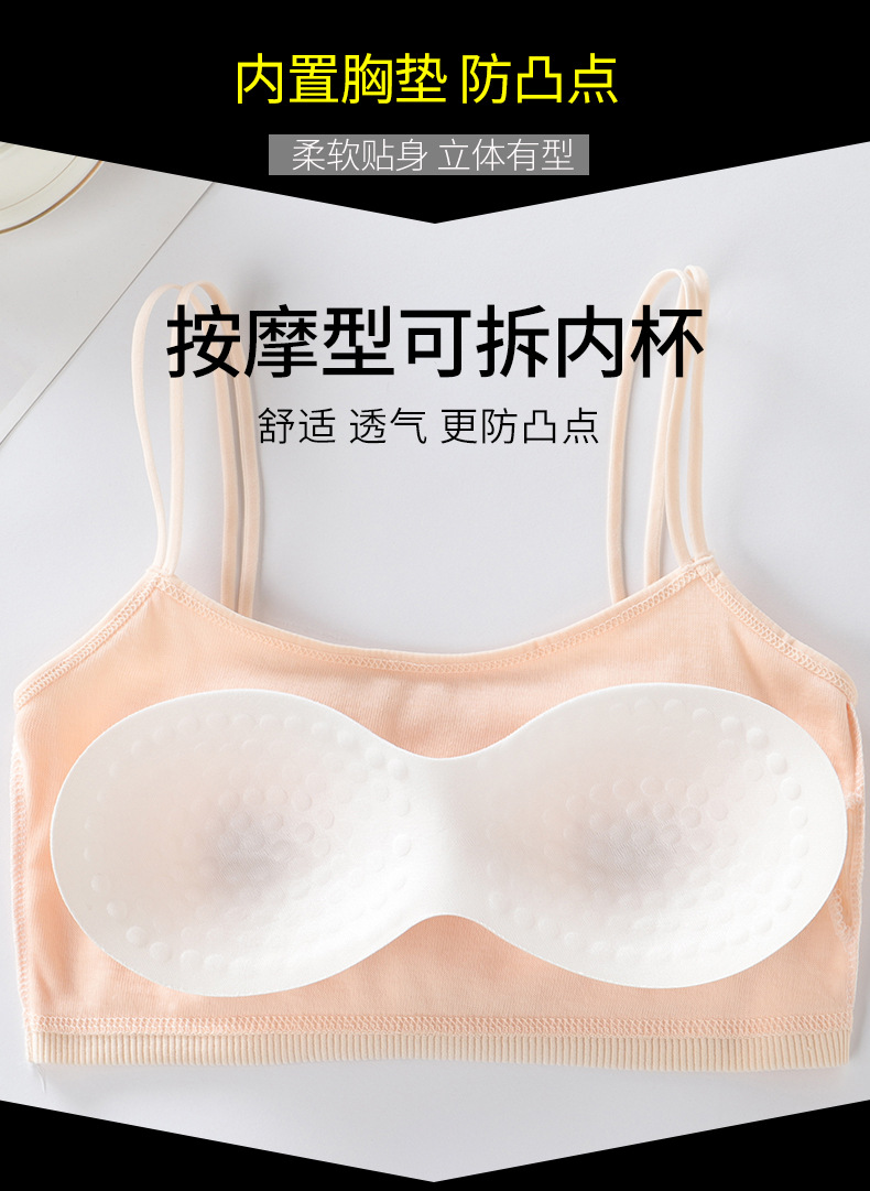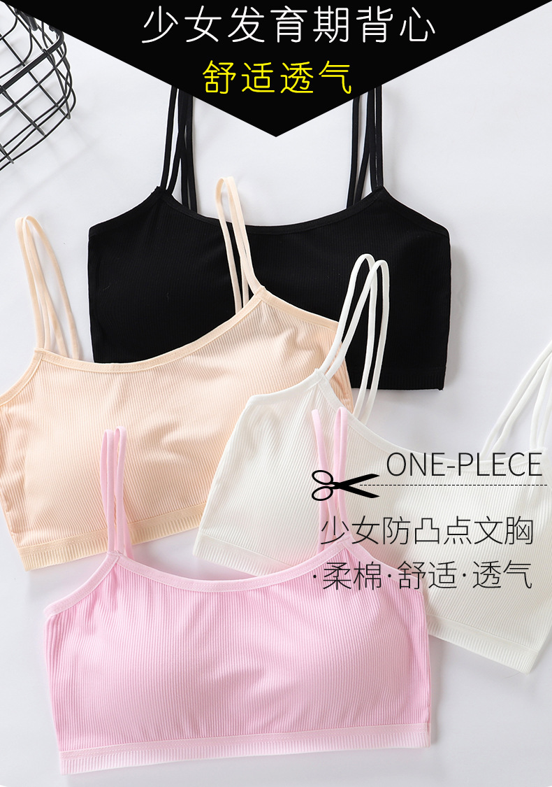 속옷, 와이어 없음, 작은 조끼, 면 소재, 소녀용, 사춘기 브라, 3단계, 소녀 발달기, 가슴 패드 포함