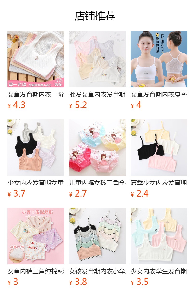 속옷, 와이어 없음, 작은 조끼, 면 소재, 소녀용, 사춘기 브라, 3단계, 소녀 발달기, 가슴 패드 포함스토어 가기