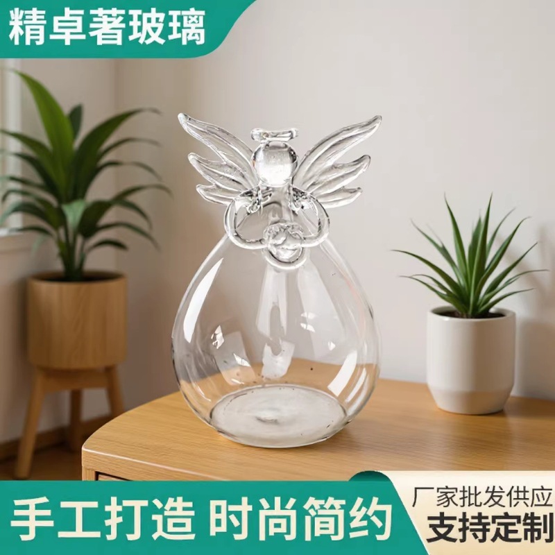 홈 데코 공예품 걸이 장식 미니어처 작은 천사 수경 화병 투명 유리 걸이 장식품