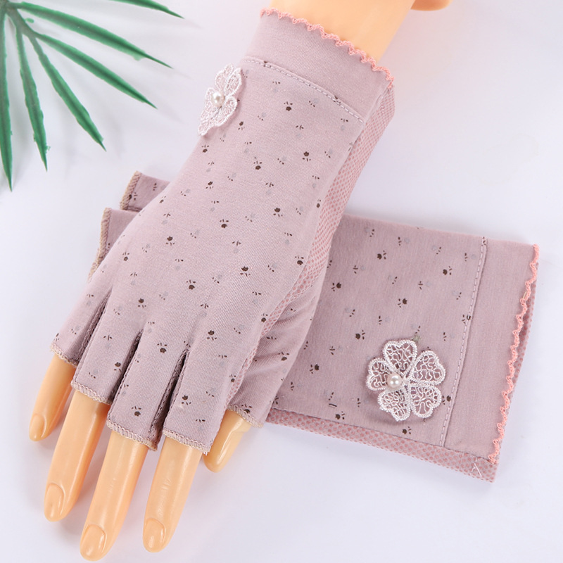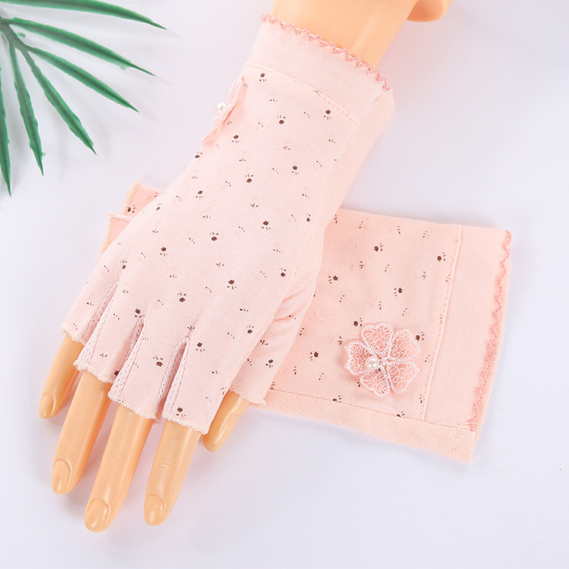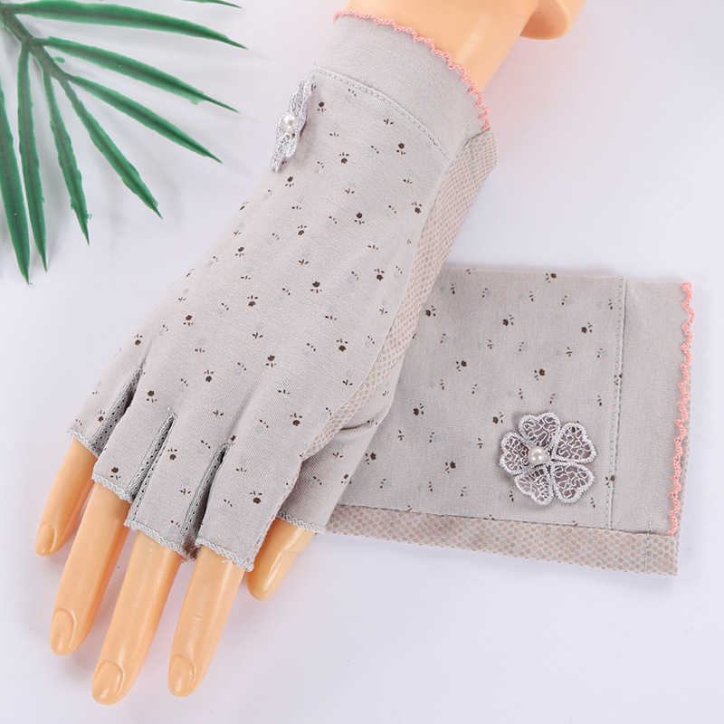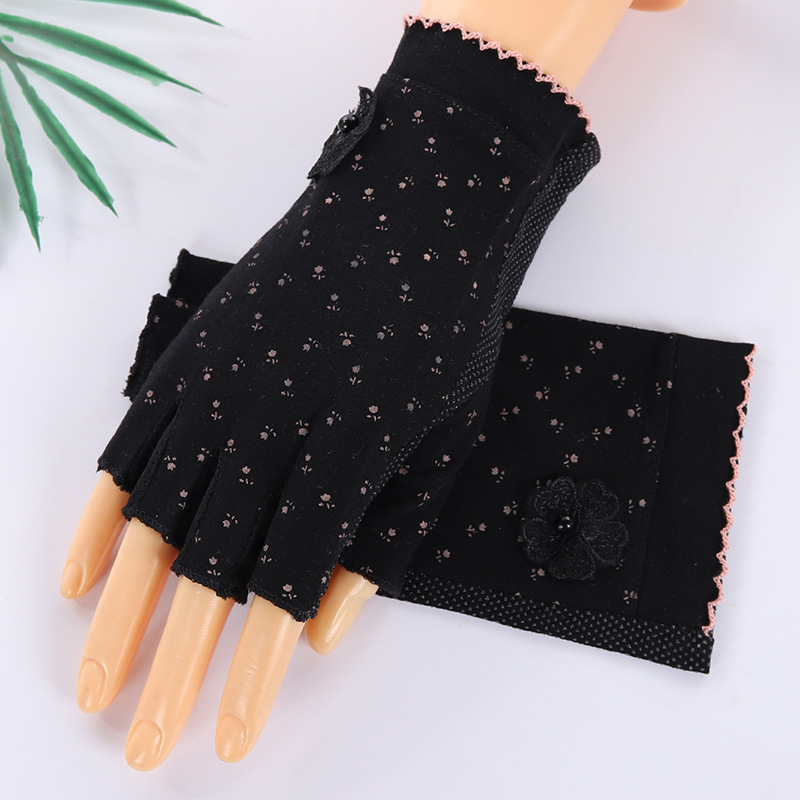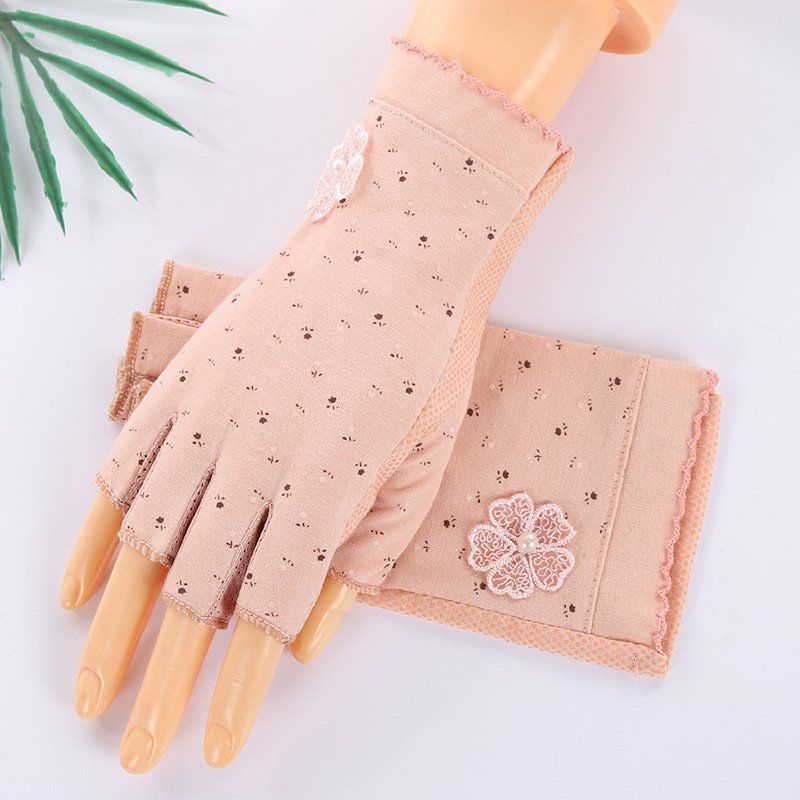 운전 태양 보호 미끄럼 방지 장갑 여성용 얇은 여름 승마 스트레치 차양 통기성 여름 면 봄과 가을 반 손가락