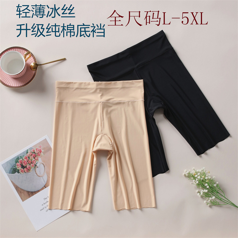 200kg 플러스 사이즈 통통녀 아이스 실크 하이 웨이스트 여름에 여성을위한 헤밍 5 점 바닥 안전 바지없이 원활한 안티 워킹 보험 바지스토어 가기