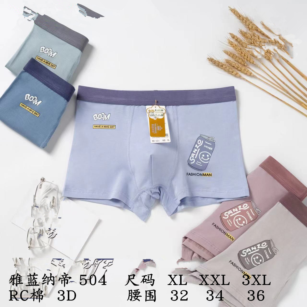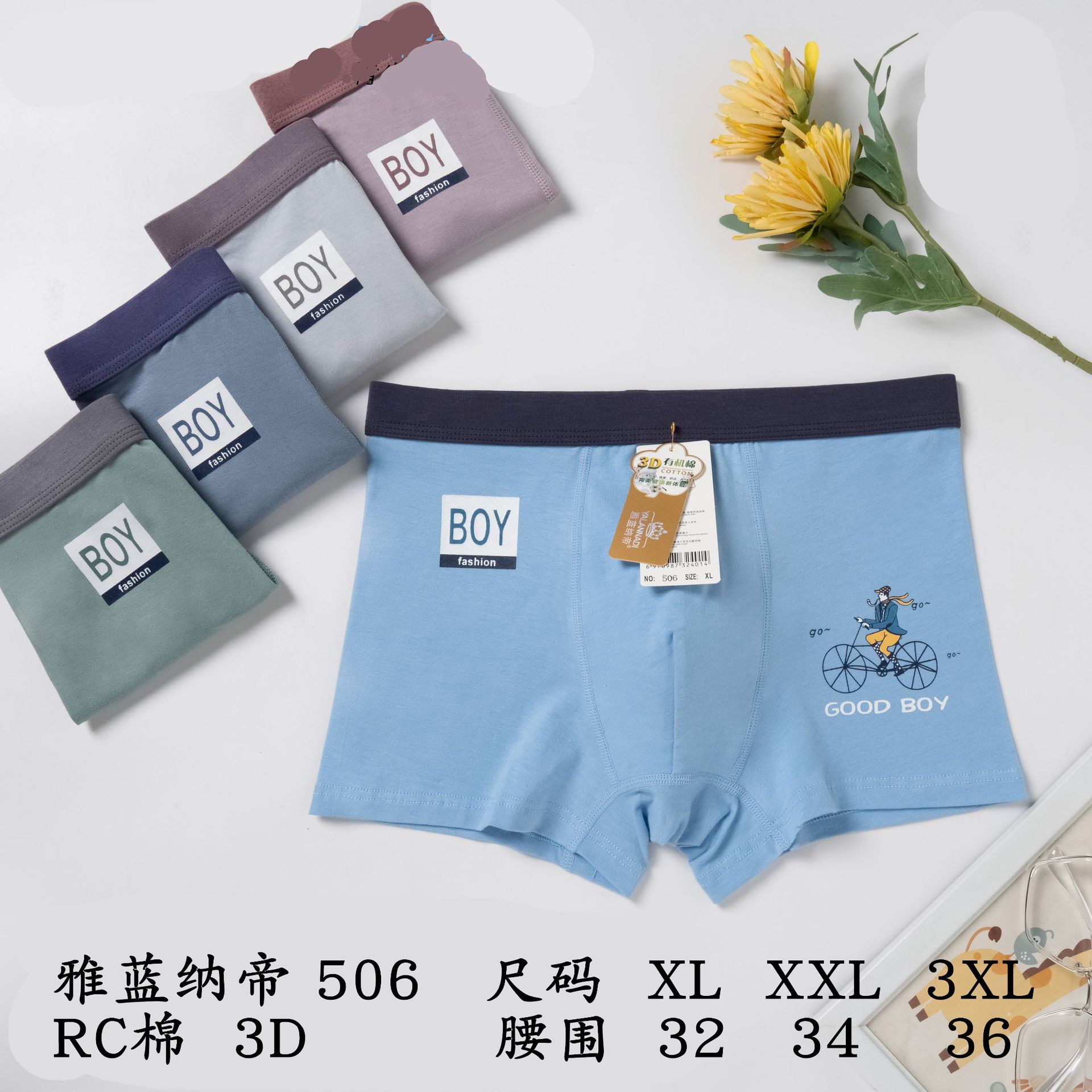 남성 속옷 면 남성 소년 프린트 3D 라이트 컬러 복서 팬티 복서 양말스토어 가기