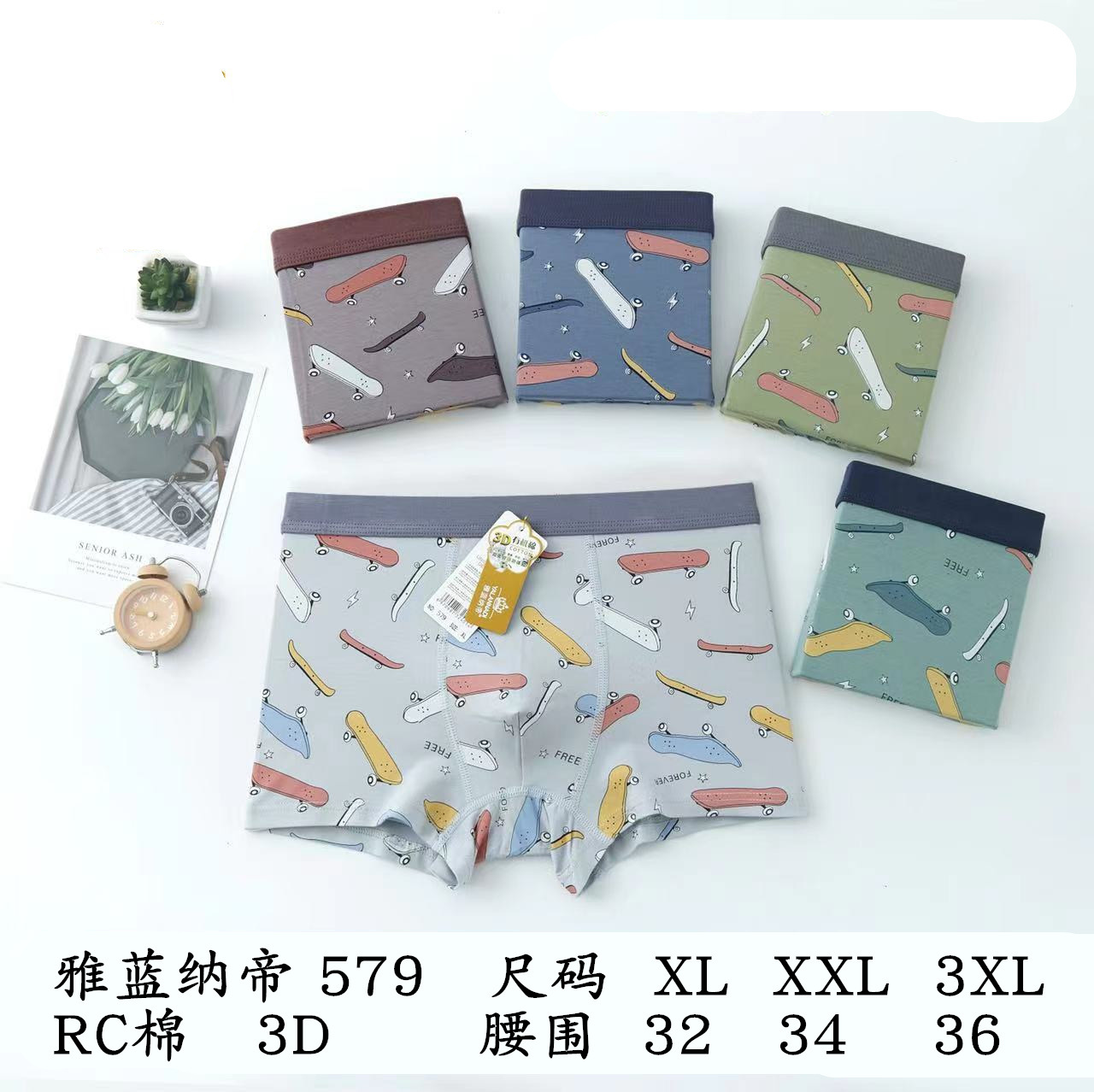 남성 속옷 면 남성 소년 프린트 3D 라이트 컬러 복서 팬티 복서 양말