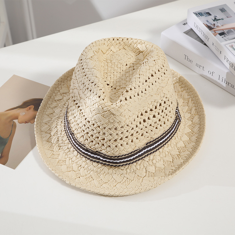 새로운 부모-자식 재즈 모자 유행 영국 모자 여름 남성 파나마 모자 어린이 해변 태양 모자