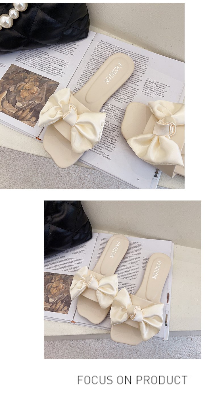 2025 봄 여름 신작 여성 신발 스퀘어 토 플랫 오픈 토 슬리퍼 한국 스타일 패션 보우 여성 슬리퍼스토어 가기