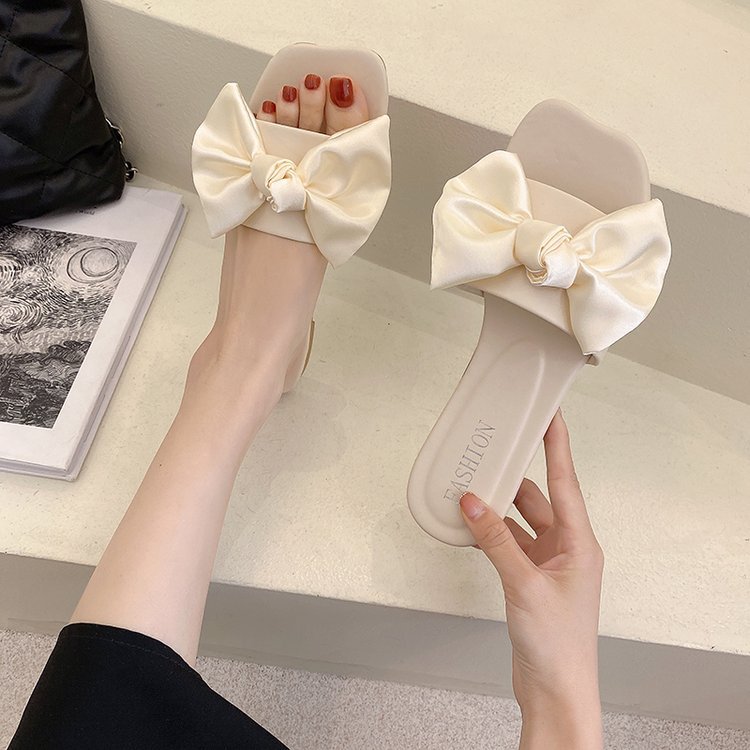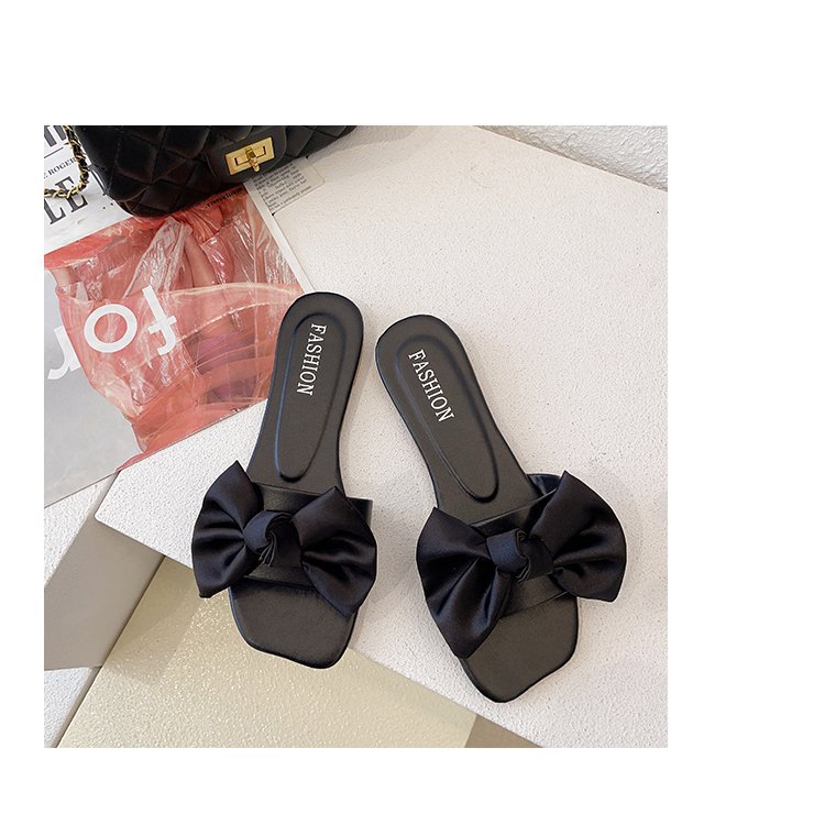 2025 봄 여름 신작 여성 신발 스퀘어 토 플랫 오픈 토 슬리퍼 한국 스타일 패션 보우 여성 슬리퍼