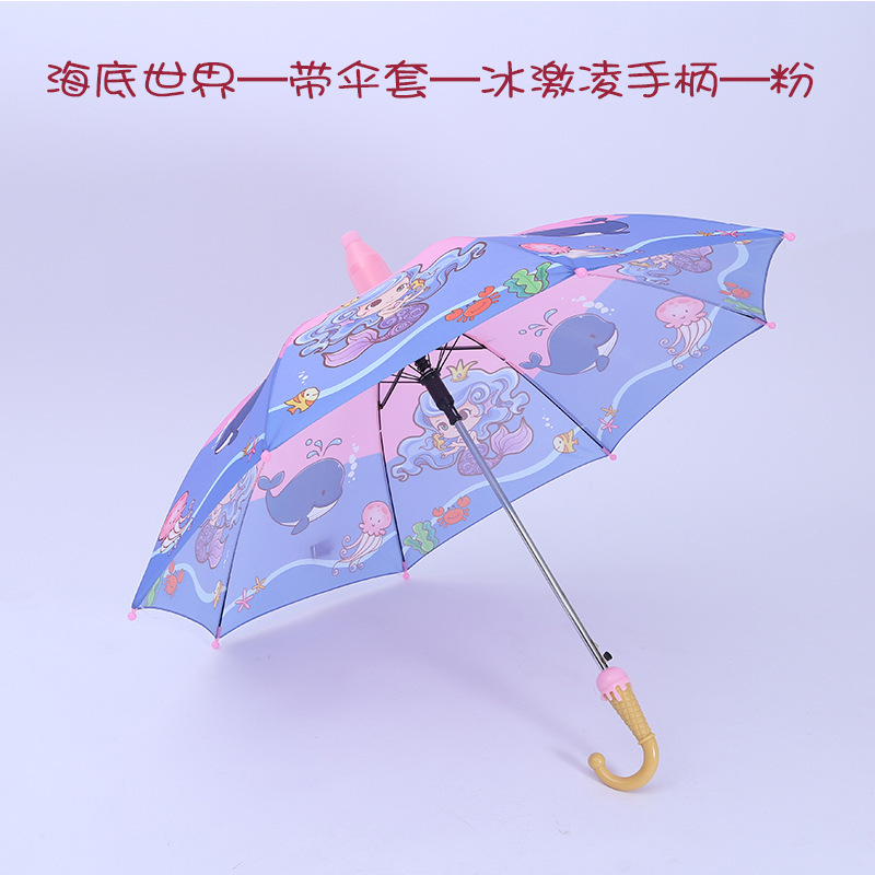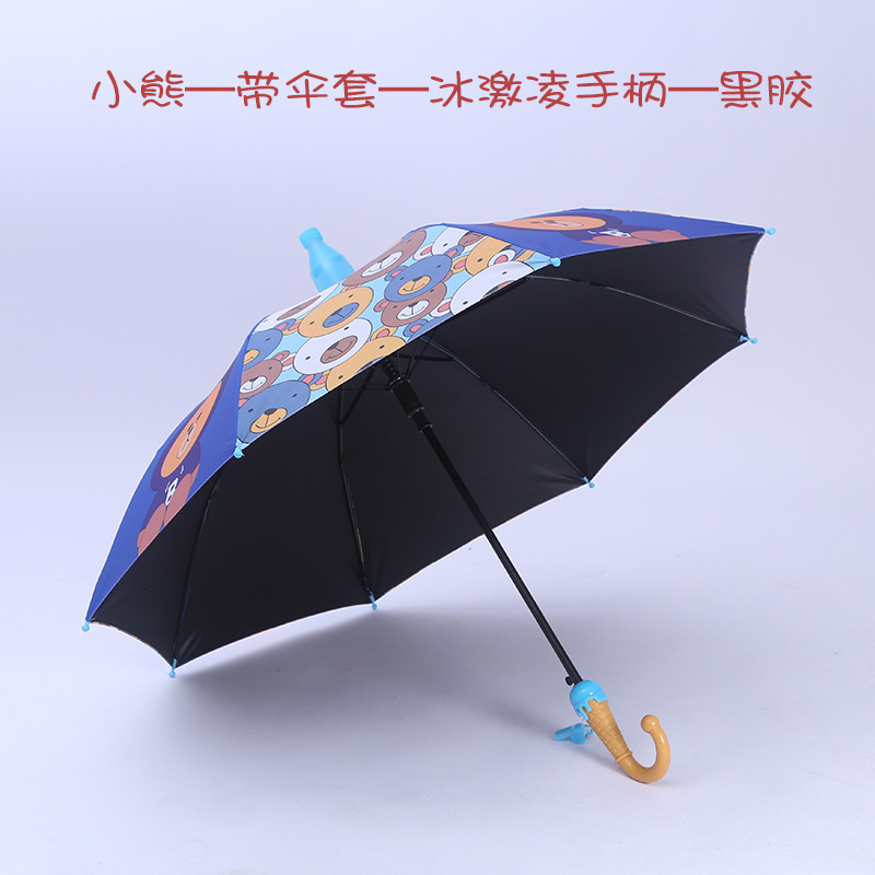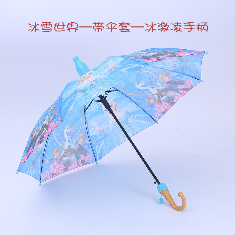 자동 개방 비닐 비 방수 커버가있는 어린이 우산 유치원 학생 귀여운 만화 긴 손잡이 어린이 우산
