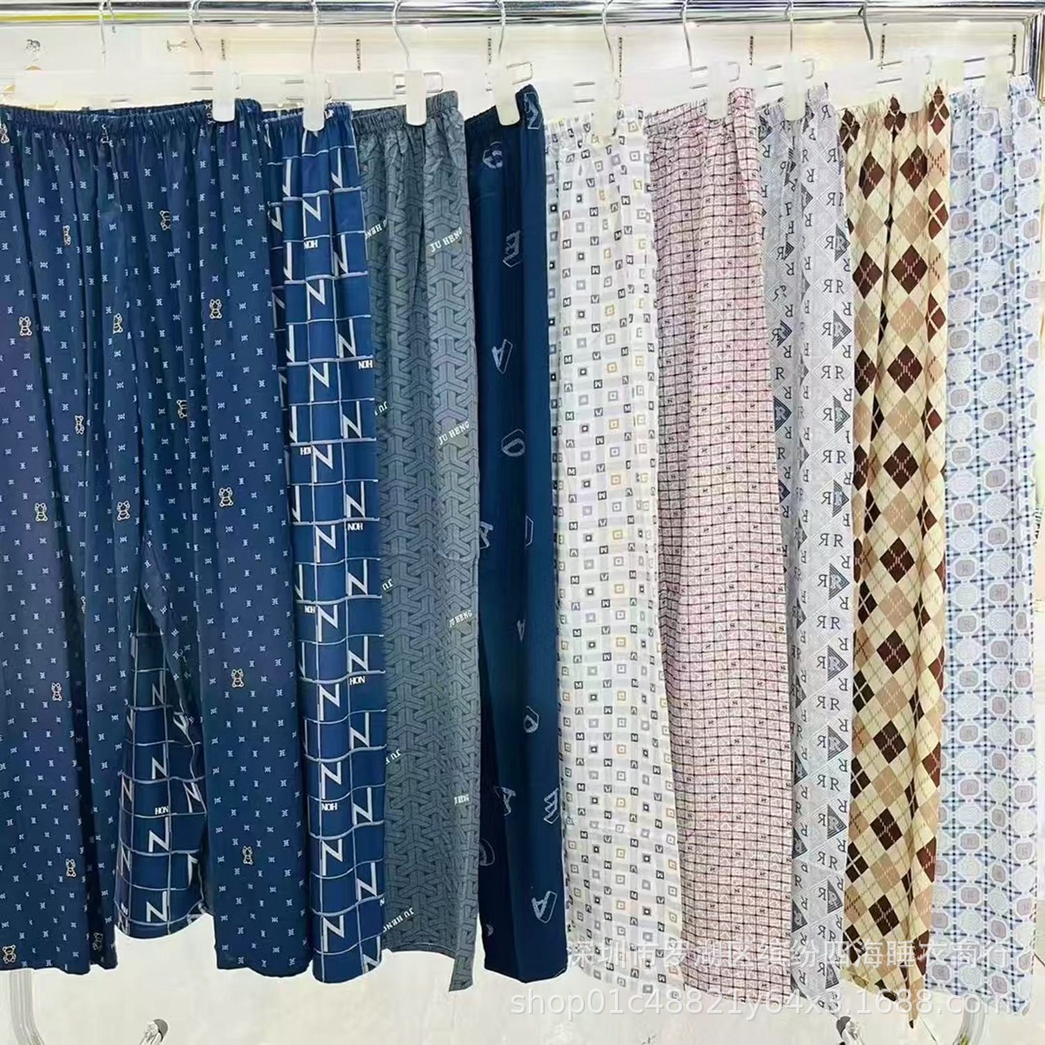 얇은 싱글 남성 여름 남성 잠옷, 면 실크 캐주얼 바지, 인조 면 격자 무늬 면 실크 바지, 스트레이트 홈 바지, 시원함스토어 가기
