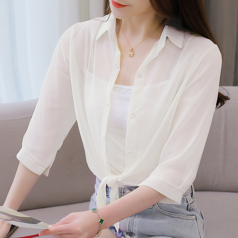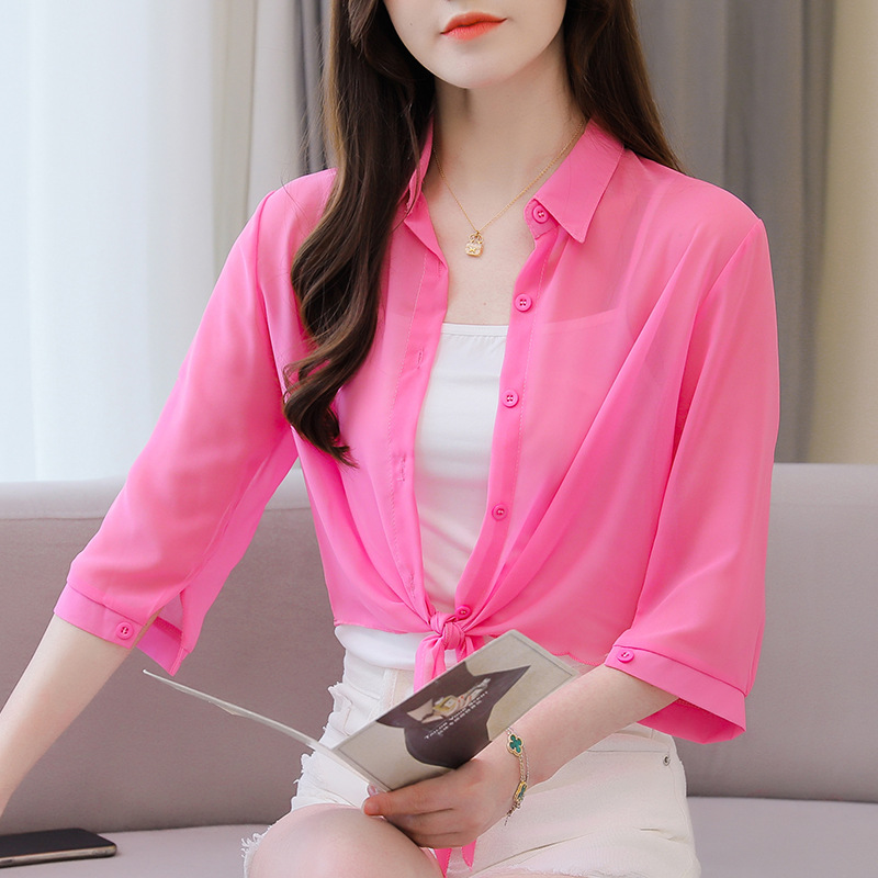 2024 여름 새로운 스타일 스몰 숄 얇은 셔츠 스몰 자켓 여성용 올매치 자외선 차단 의류 쉬폰 가디건 여성용 에어컨 셔츠스토어 가기