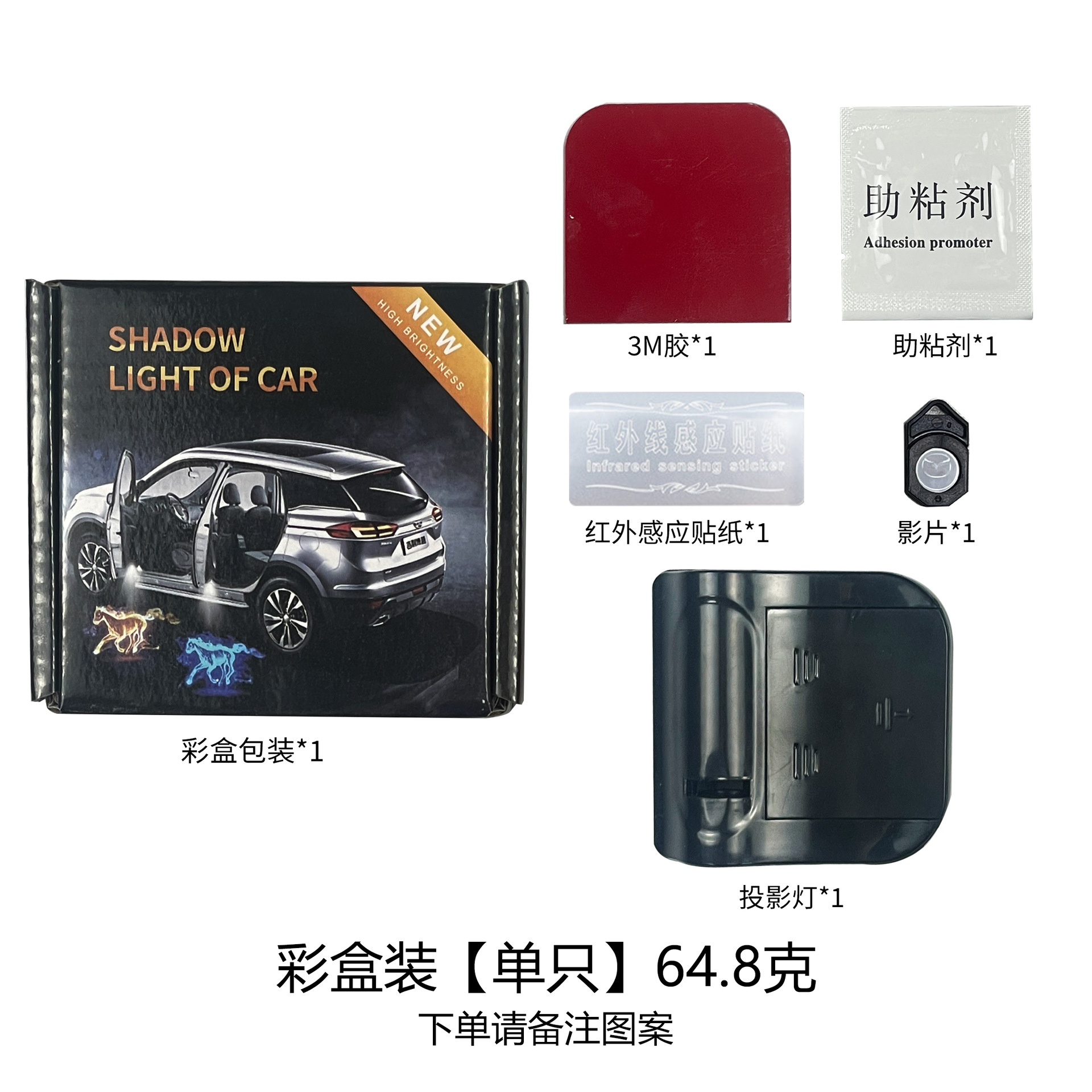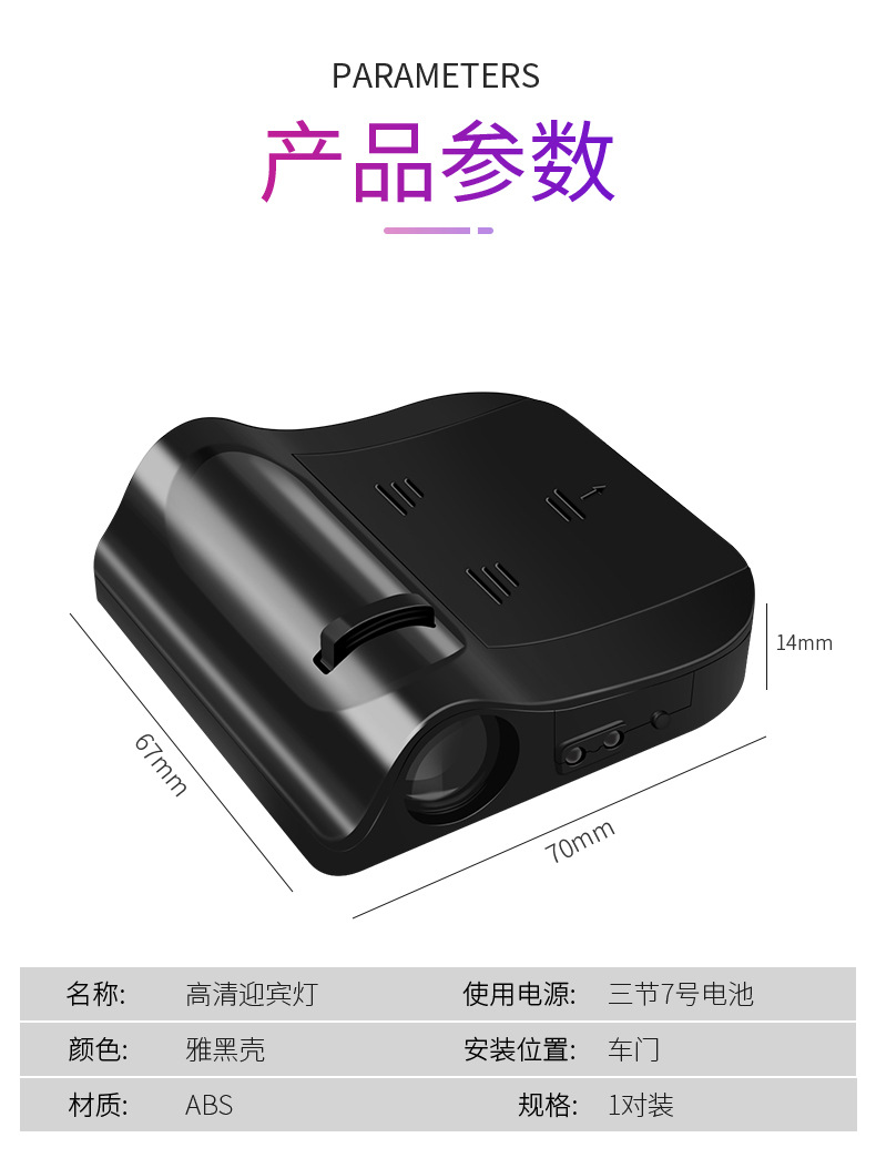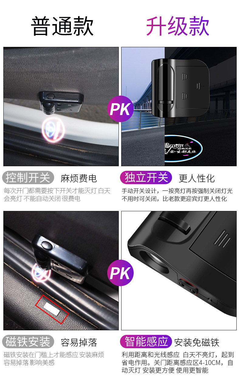 자동차 환영 램프 무선 프로젝션 램프 적외선 센서 도어 조명 LED 장식 램프 범용 수정 램프