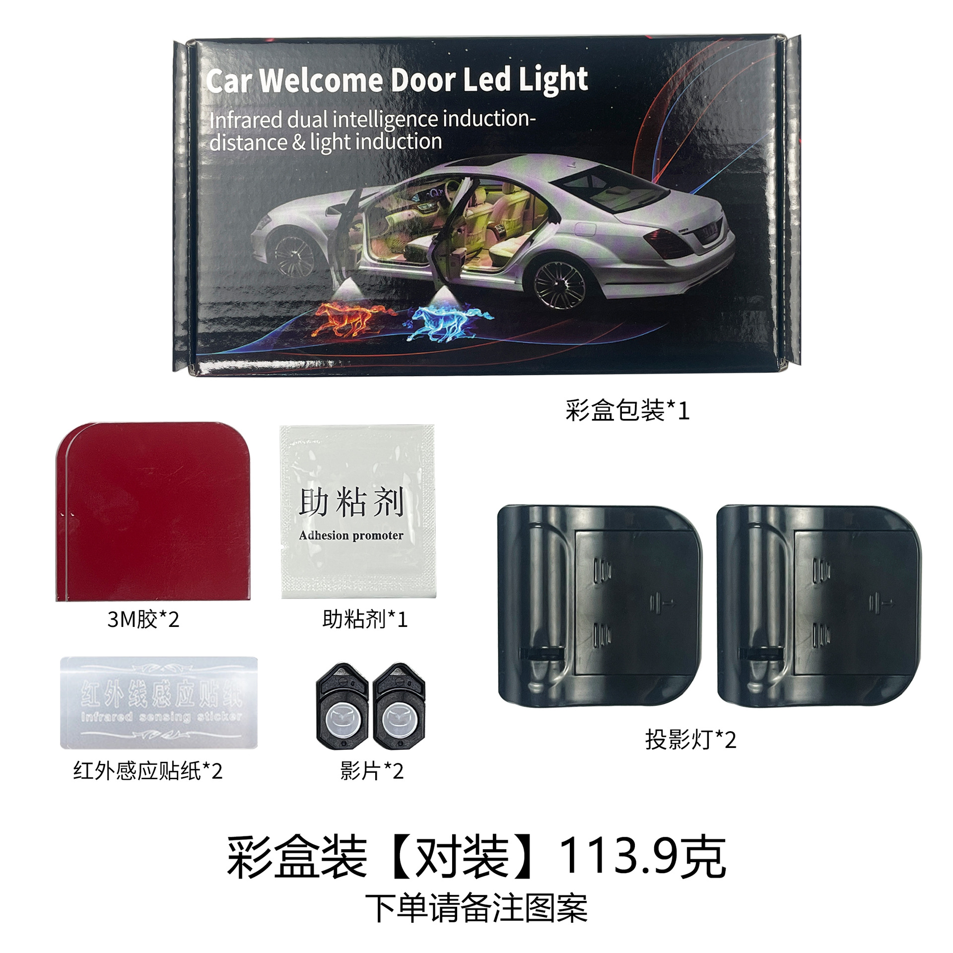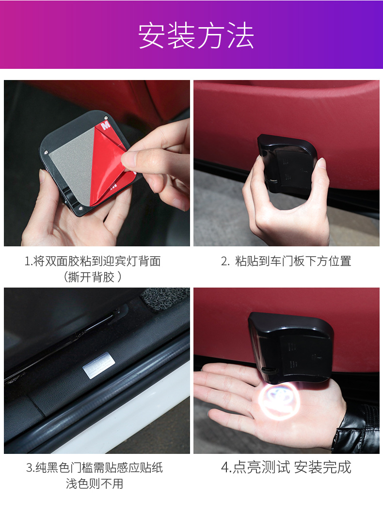 자동차 환영 램프 무선 프로젝션 램프 적외선 센서 도어 조명 LED 장식 램프 범용 수정 램프스토어 가기