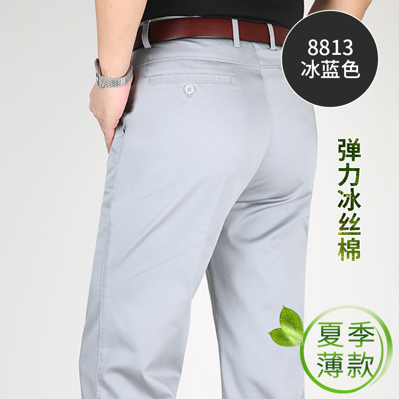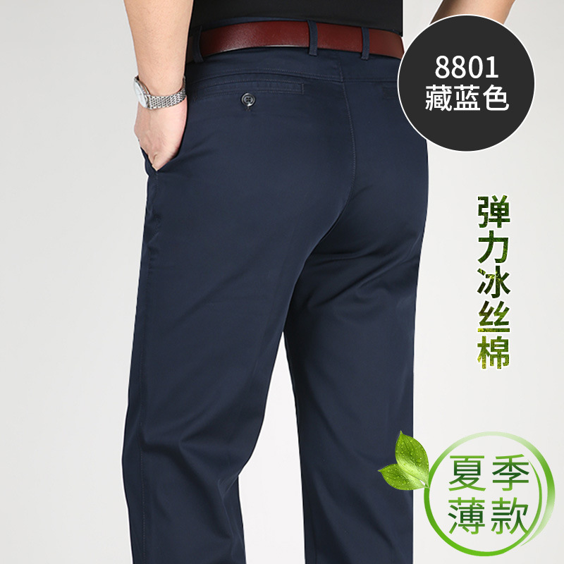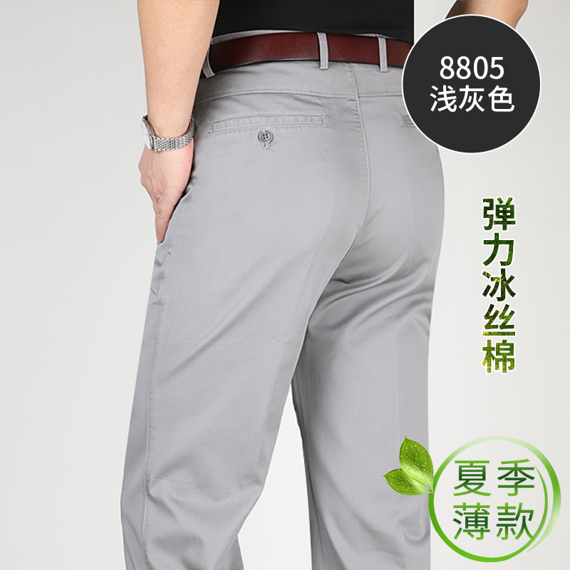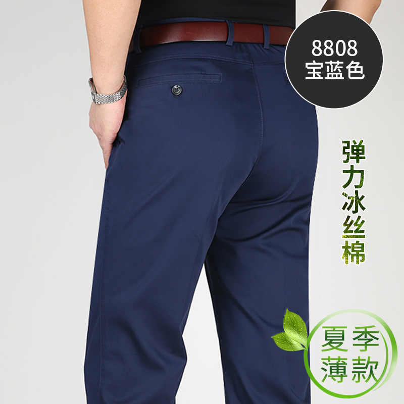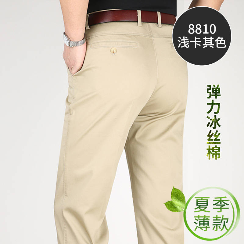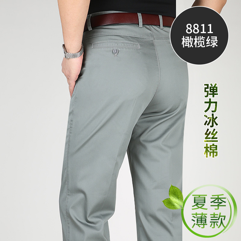 Perki 캥거루 2023 새로운 중년 남성 캐주얼 바지 아이스 실크 코튼 비즈니스 스트레치 중년 아빠 롱 팬츠스토어 가기