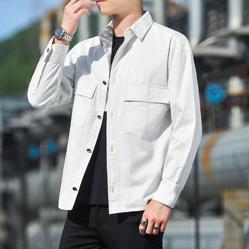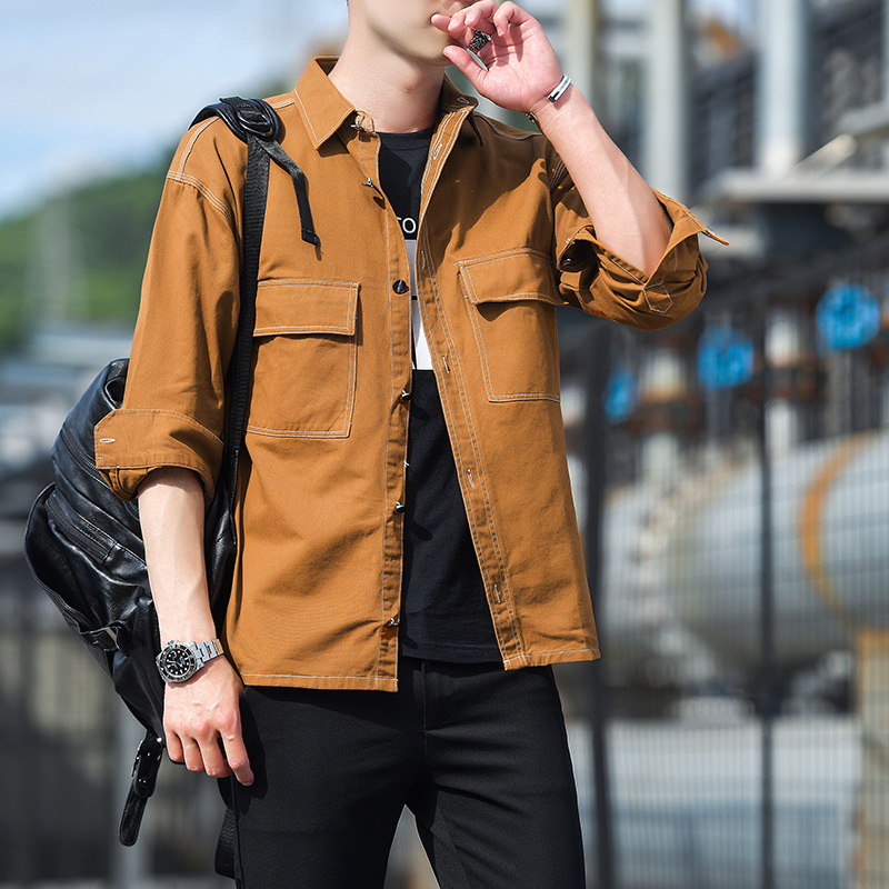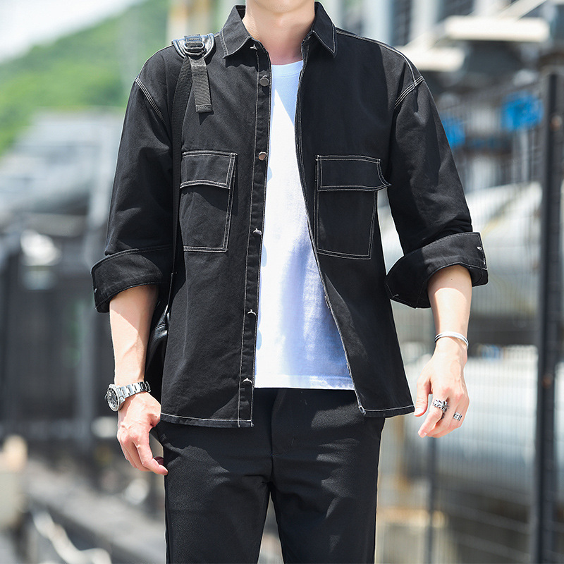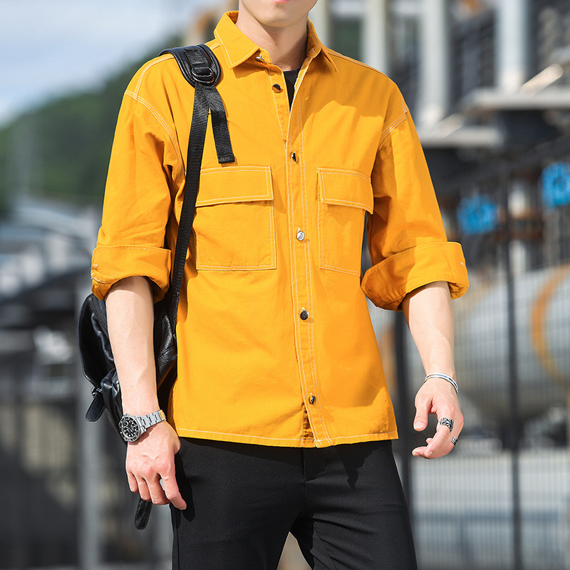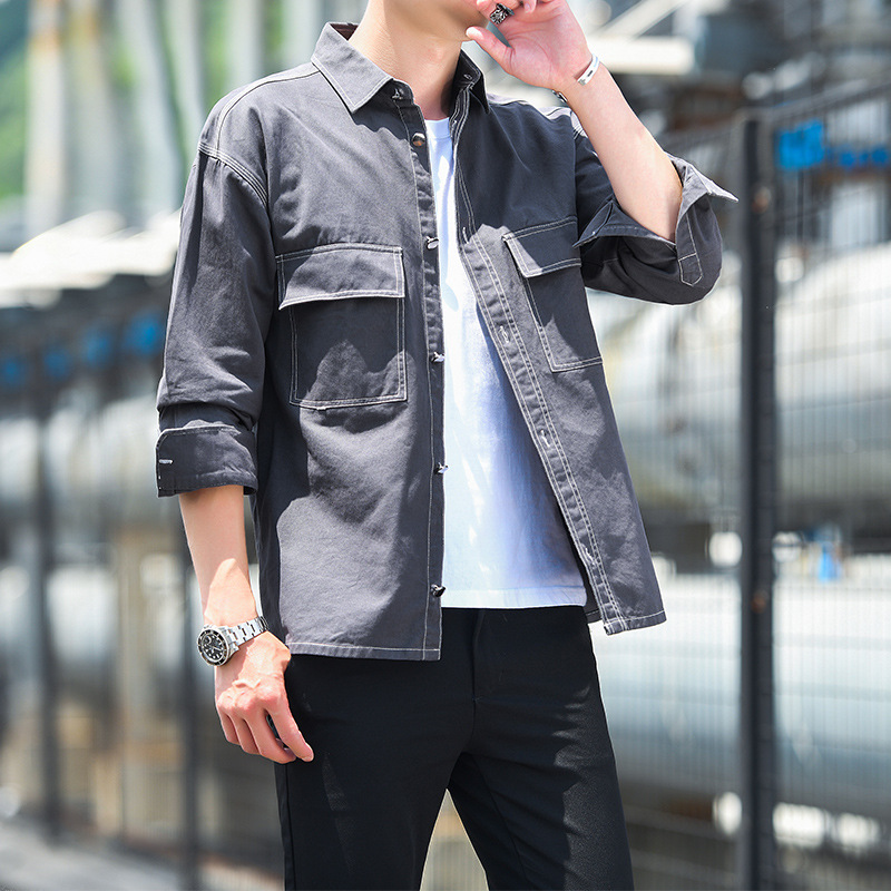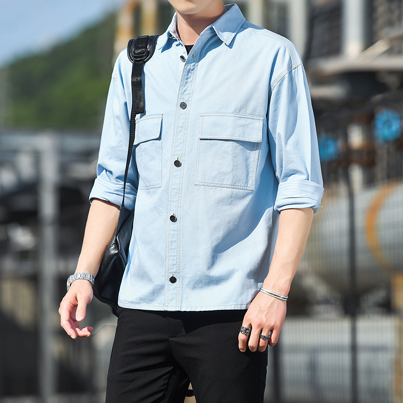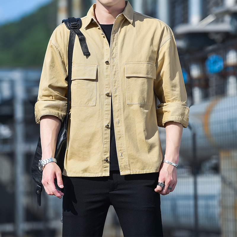 순면 멀티 백 일본 툴링 긴팔 셔츠 유행 단색 남성 셔츠 느슨한 플러스 사이즈 숄더 셔츠 청소년스토어 가기