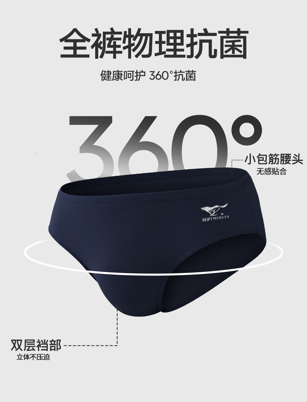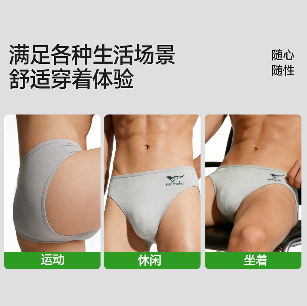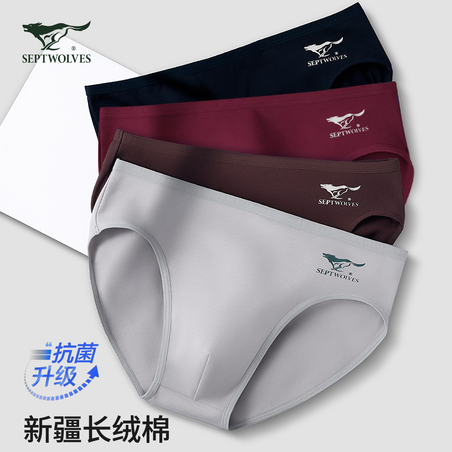 세븐울프 남성용 삼각팬티 순면 항균 속옷 편안하고 통기성 좋은 청년 삼각팬티 4종 세트