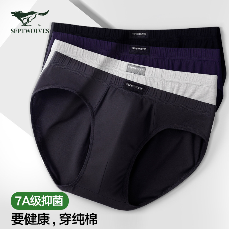 일곱 늑대 속옷 남자 브리프 면화 남자 브리프 편안한 통기성 청소년 브리프 4 박스스토어 가기