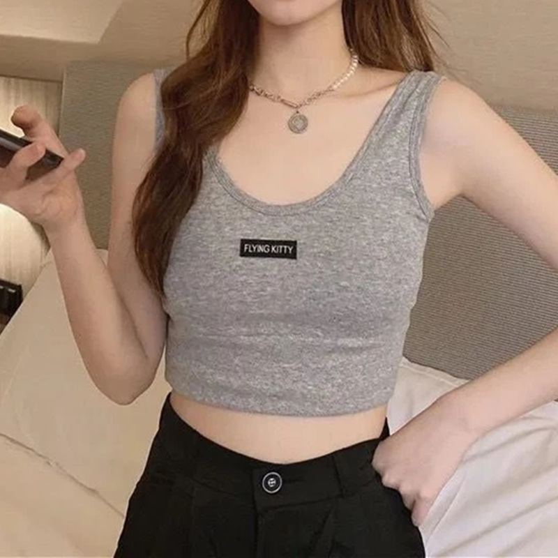 한국 스타일 인 화이트 캐미솔 베이스 조끼 여성용 퓨어 코튼 슬림 핏 모든 매치 쇼트 탑 (가슴 패드 튜브 탑 포함)스토어 가기