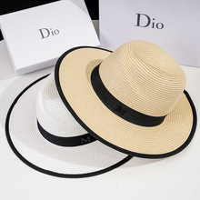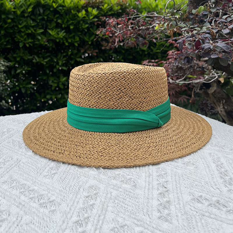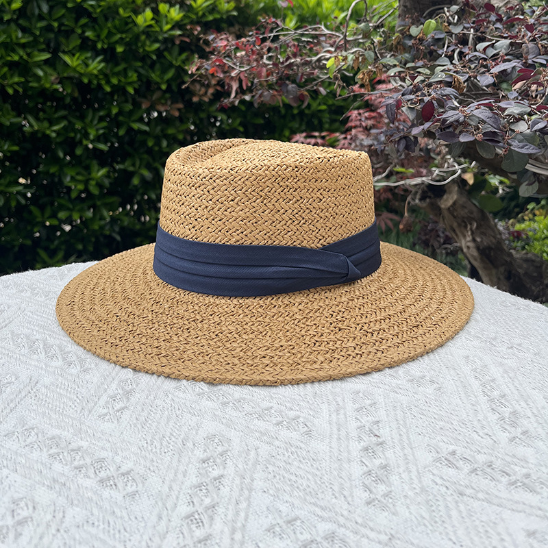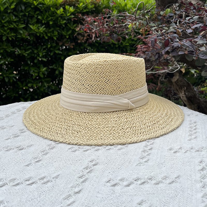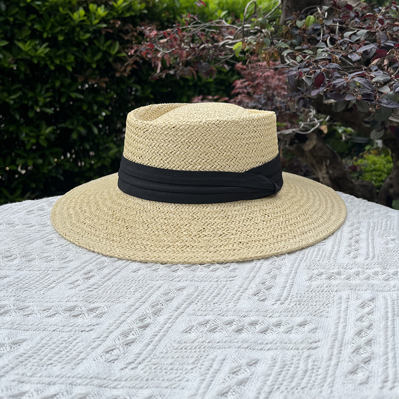 여름 모자 여성 플랫 탑 밀짚 모자 태양 모자 라피트 밀짚 모자 해변 휴가 태양 보호 태양 모자 도매