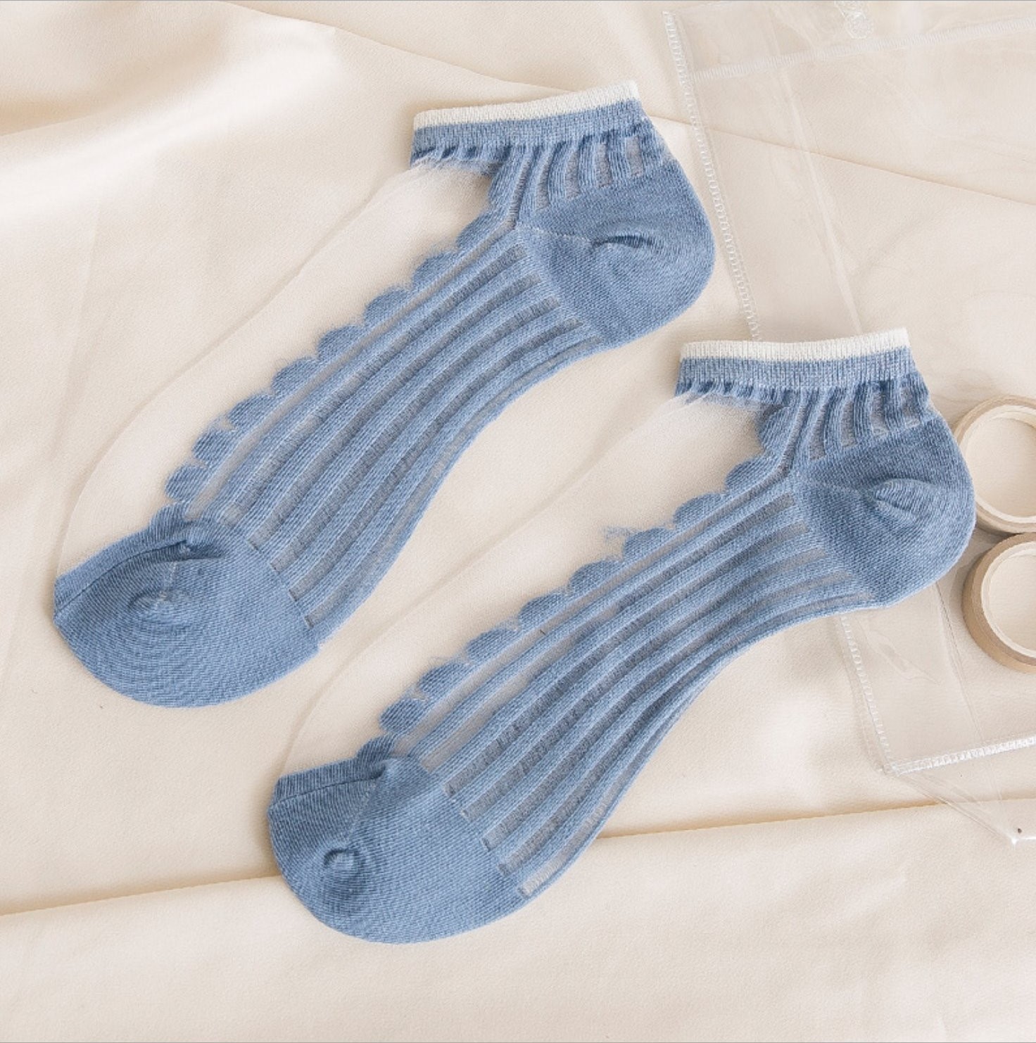여성 양말 면화 양말 봄과 여름 유리 실크 크리스탈 여성 양말 카드 스타킹 투명 튜브 얇은 작은 데이지 도매