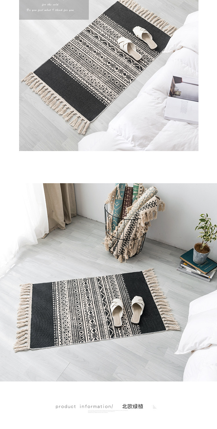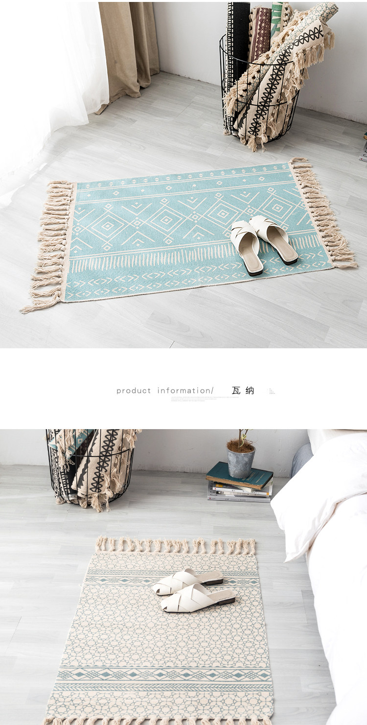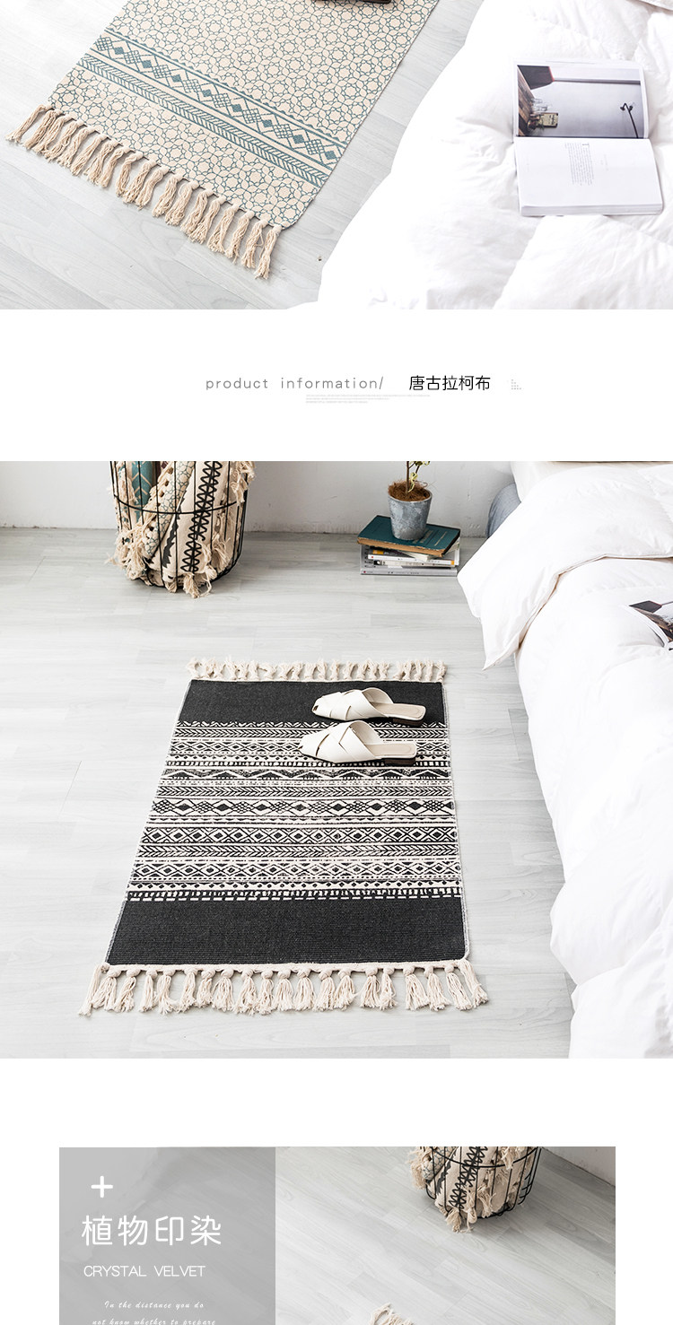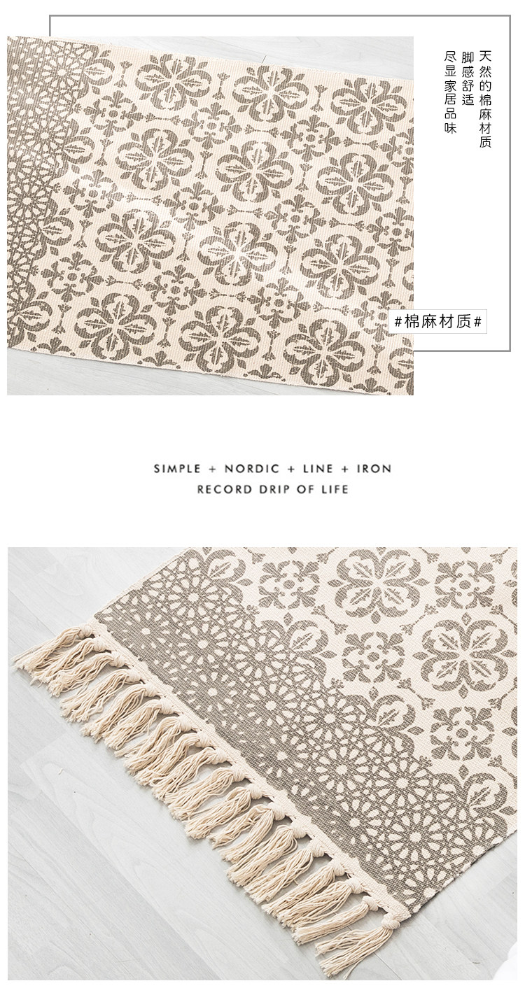 북유럽 레트로 에스닉 스타일 천연 면과 린넨 신선한 카펫 거실 침실 침대 옆 발 매트 소파 커피 테이블 바닥 매트스토어 가기