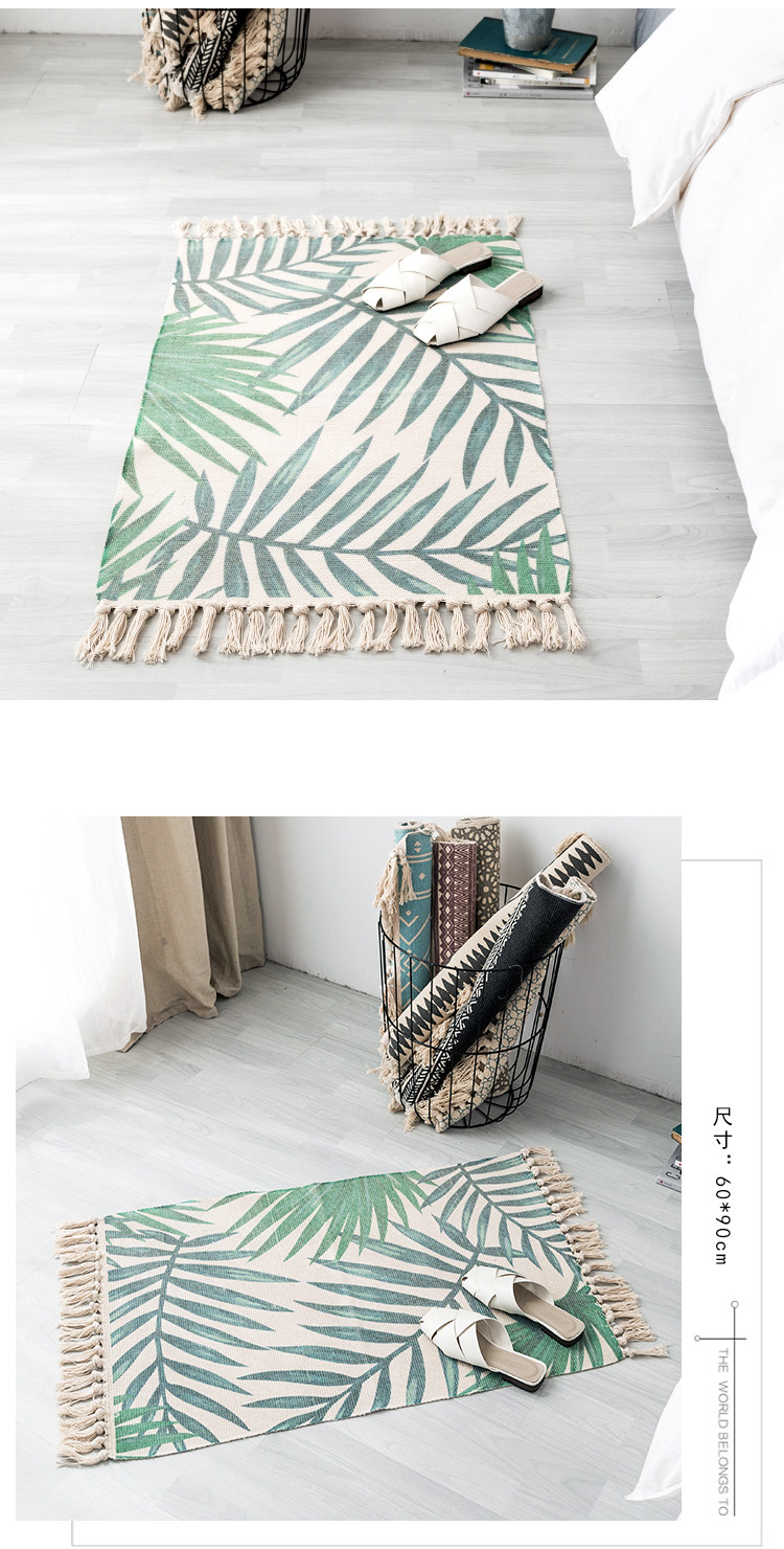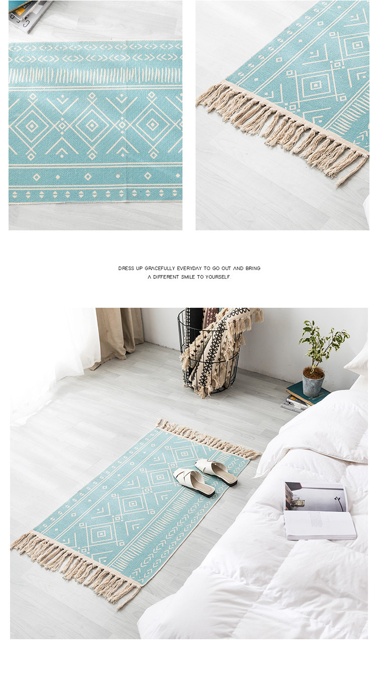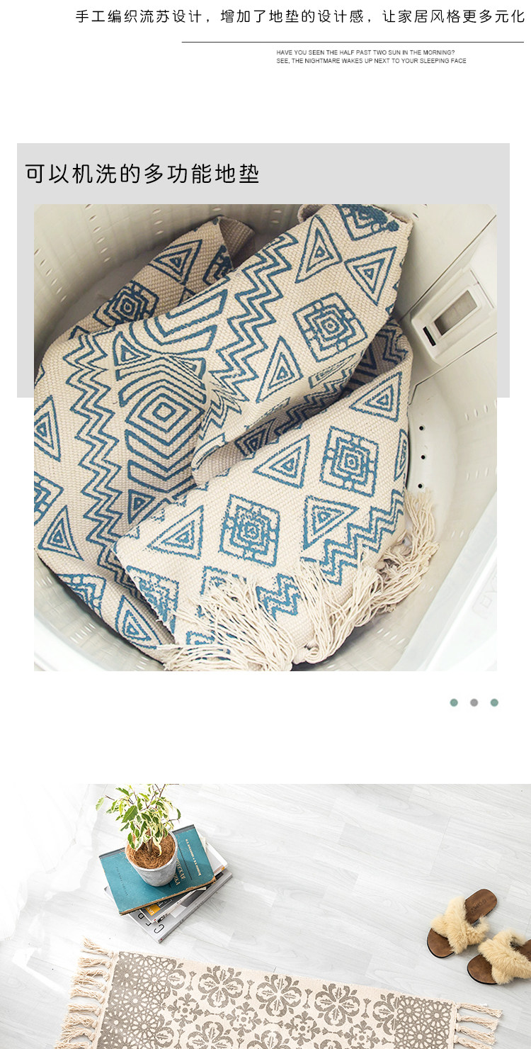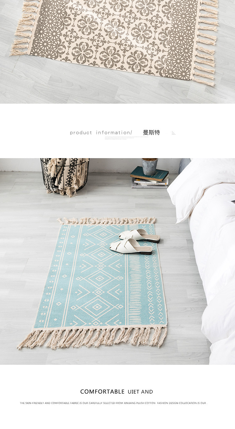 북유럽 레트로 에스닉 스타일 천연 면과 린넨 신선한 카펫 거실 침실 침대 옆 발 매트 소파 커피 테이블 바닥 매트스토어 가기