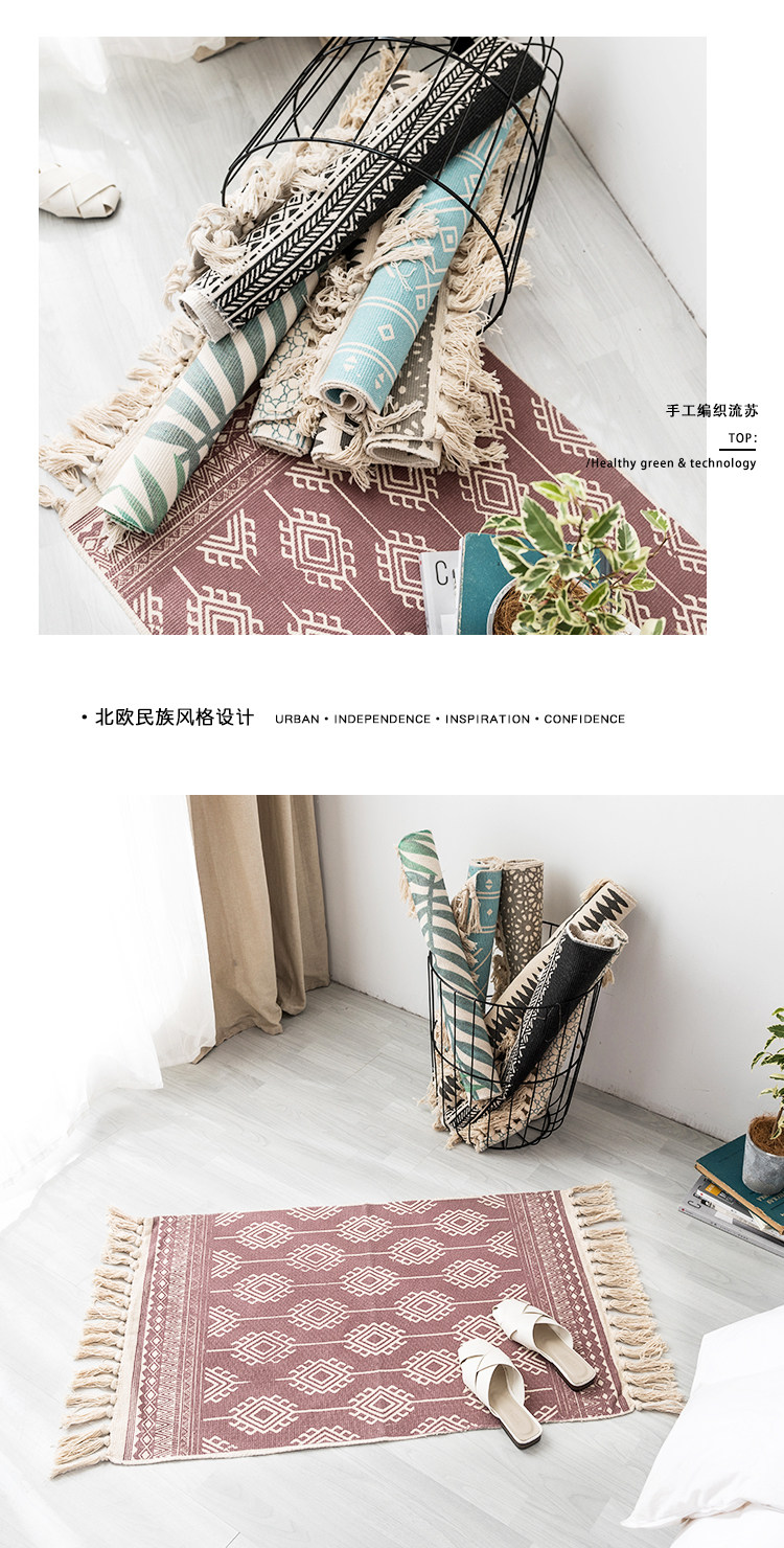 북유럽 레트로 에스닉 스타일 천연 면과 린넨 신선한 카펫 거실 침실 침대 옆 발 매트 소파 커피 테이블 바닥 매트