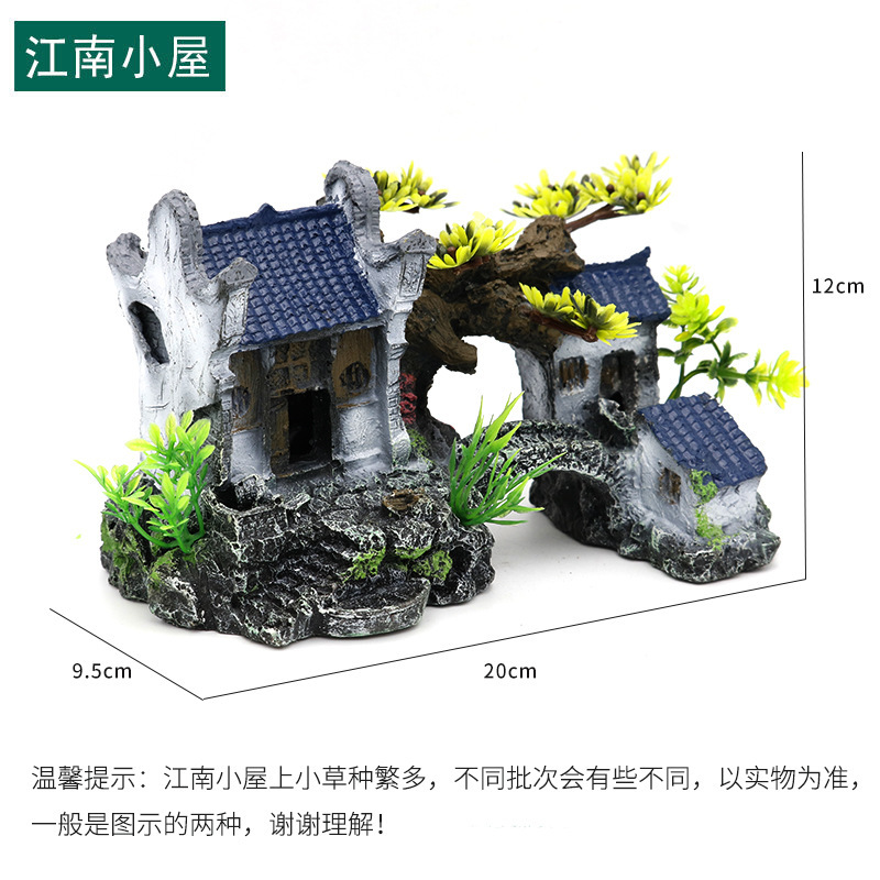 어항 rockery 수족관 장식 조경 rockery 집 물과 잔디 세트 패키지 Jiangnan 오두막 장식품