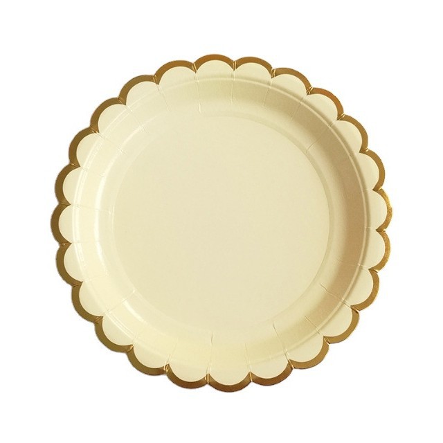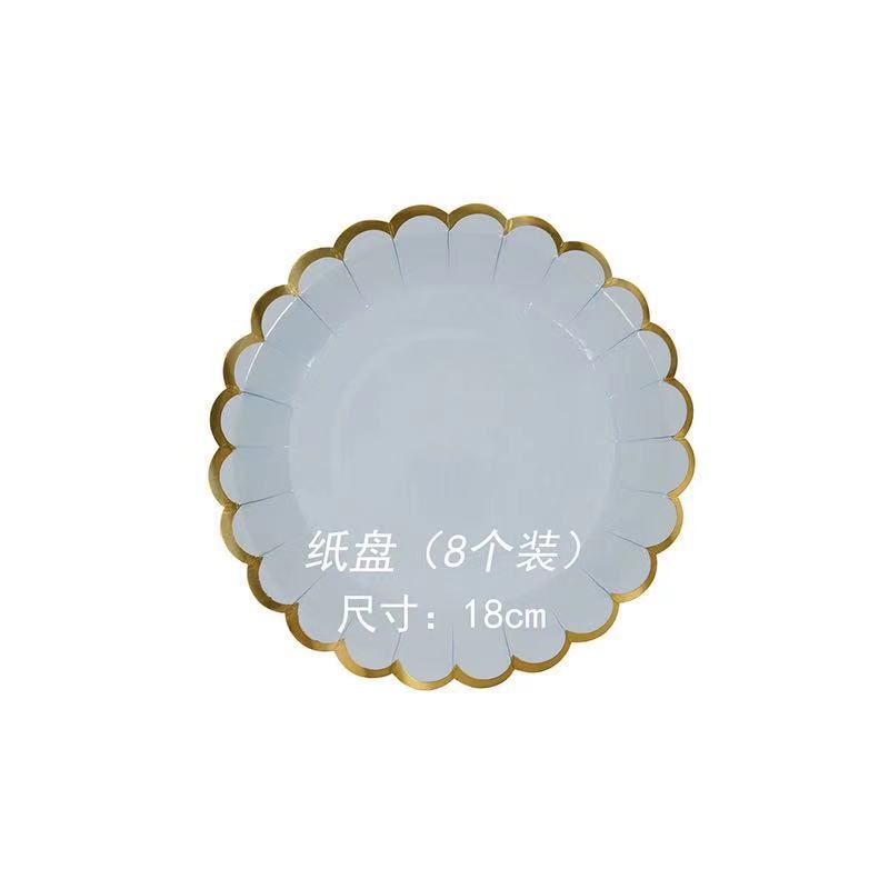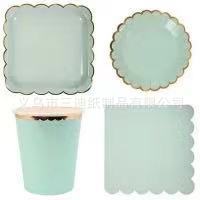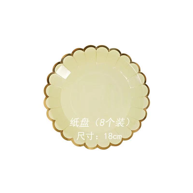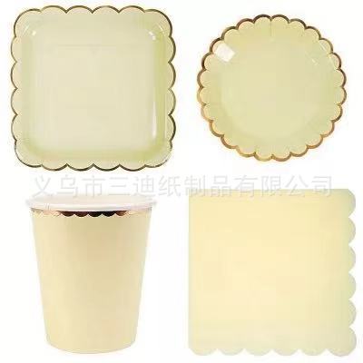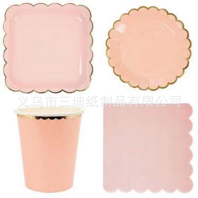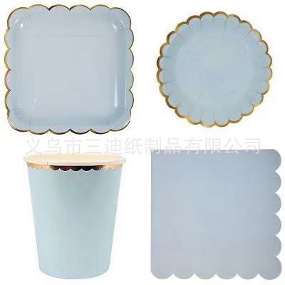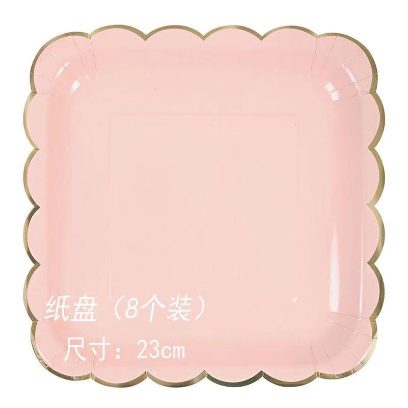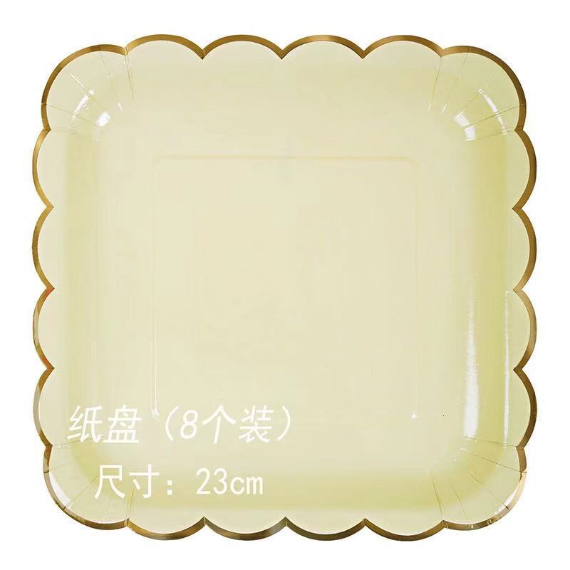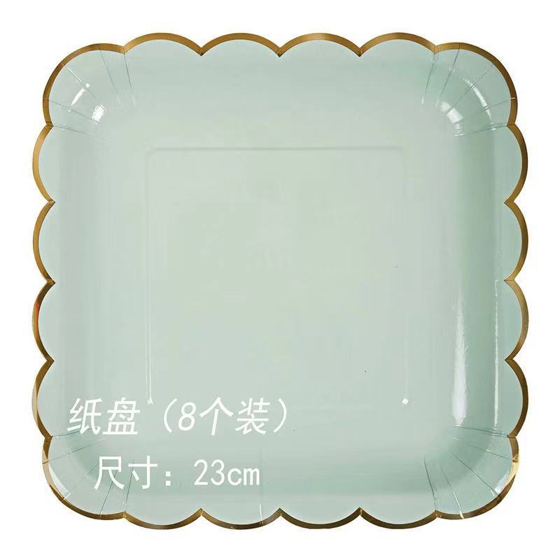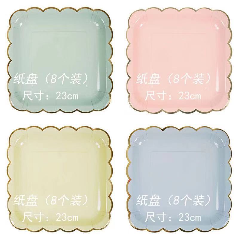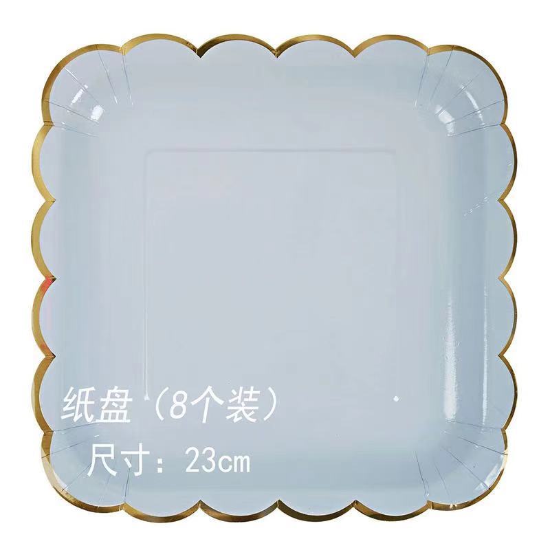브론징 단색 일회용 식기 생일 파티 케이크 접시 디너 플레이트 세트 종이 접시 종이컵 사각 접시 디스크