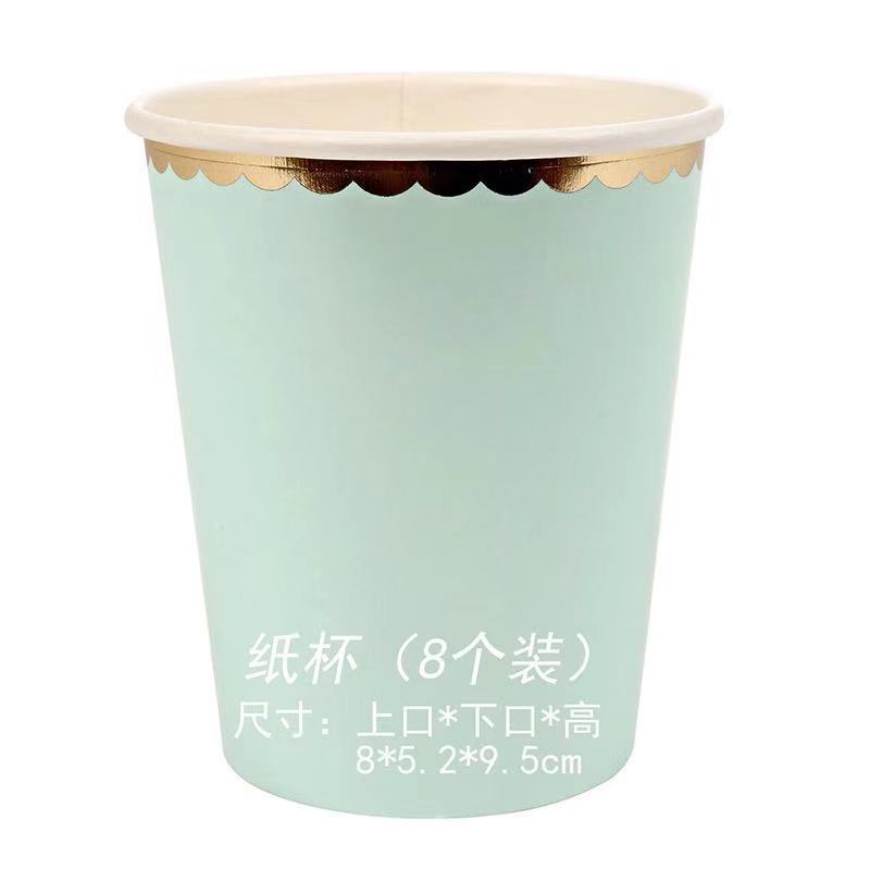 • 8 270ml 더블 레이어 핫 민트 그린 골드 종이컵