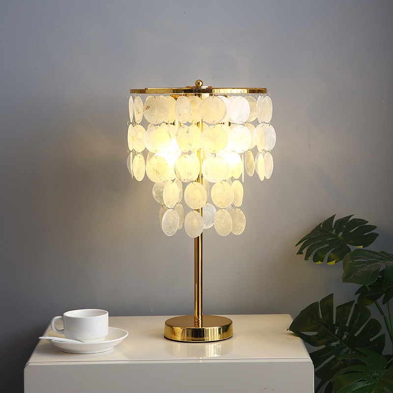 북유럽 현대 간단한 쉘 레트로 작은 테이블 램프 침실 홈 창조적 인 결혼식 따뜻한 꽃 거실 침대 옆 램프