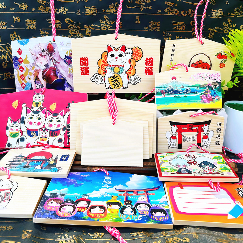 일본 희마 원목 소원판 기원판 빈 나무판 고전 장식판 기원판 오미사카 로고 인쇄 가능스토어 가기