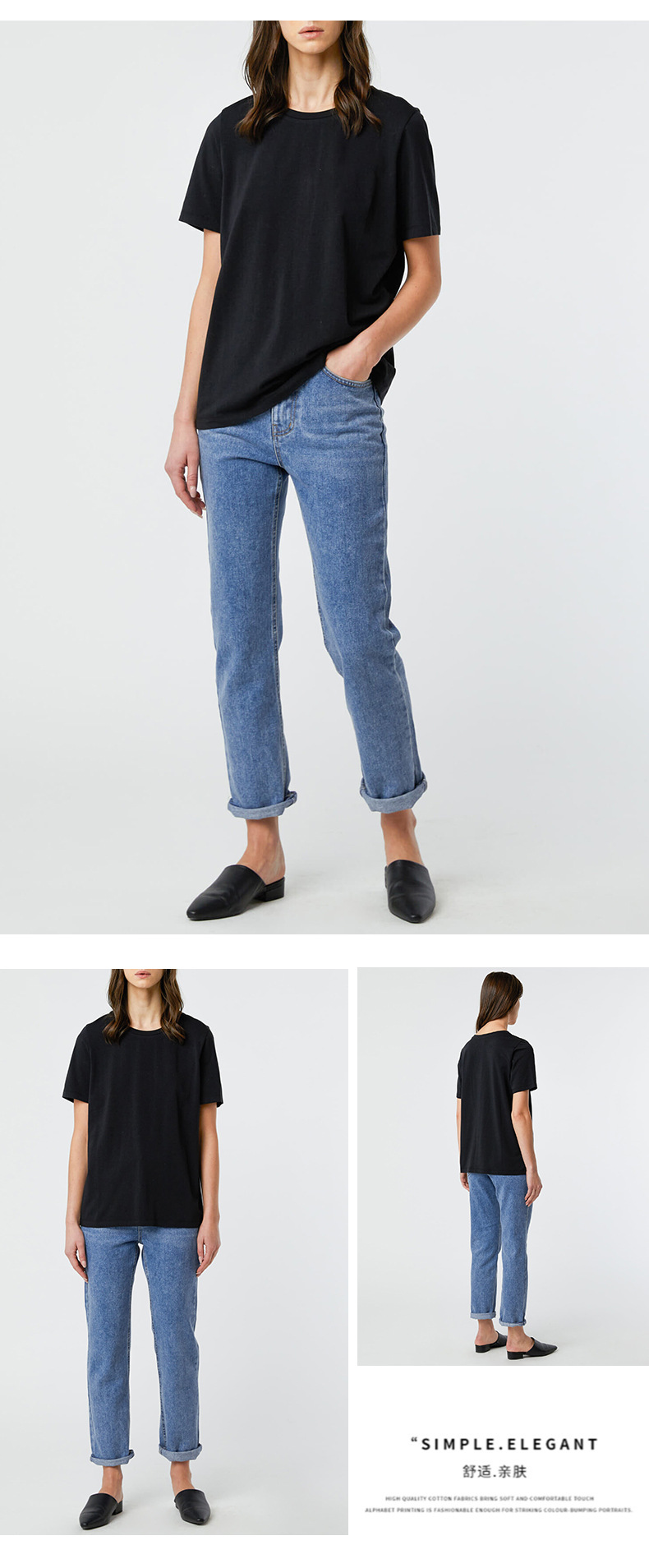 【재고정리】반팔 티셔츠 180g 고급 면 신축성 있는 기본 라운드넥 슬림핏 캐주얼 티셔츠 여성용스토어 가기