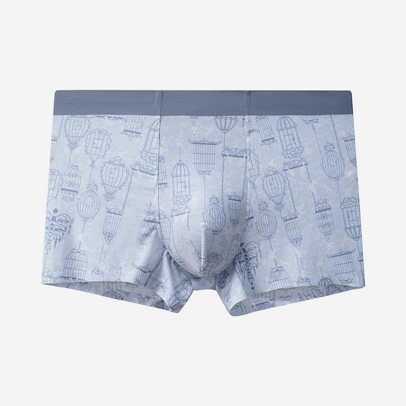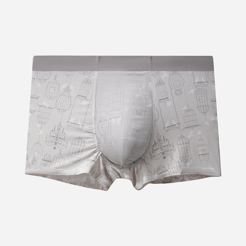 남성 속옷 아이스 실크 인쇄 여름 새로운 남성 속옷 복서 반바지 중간 허리 원활한 멋진 남성 복서