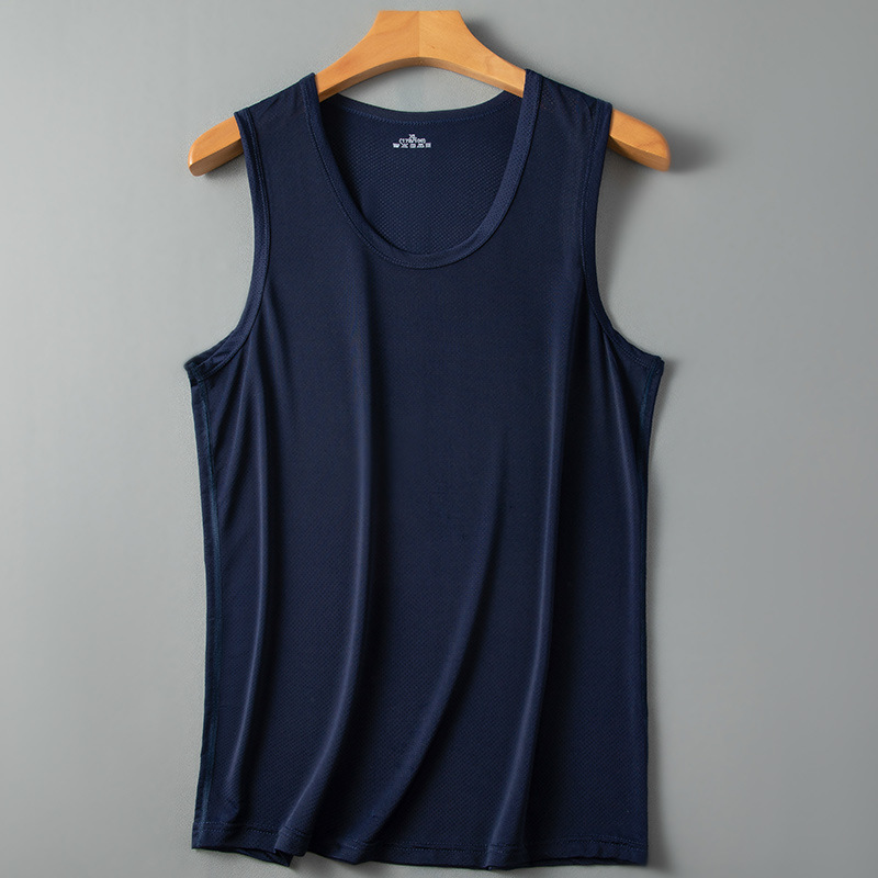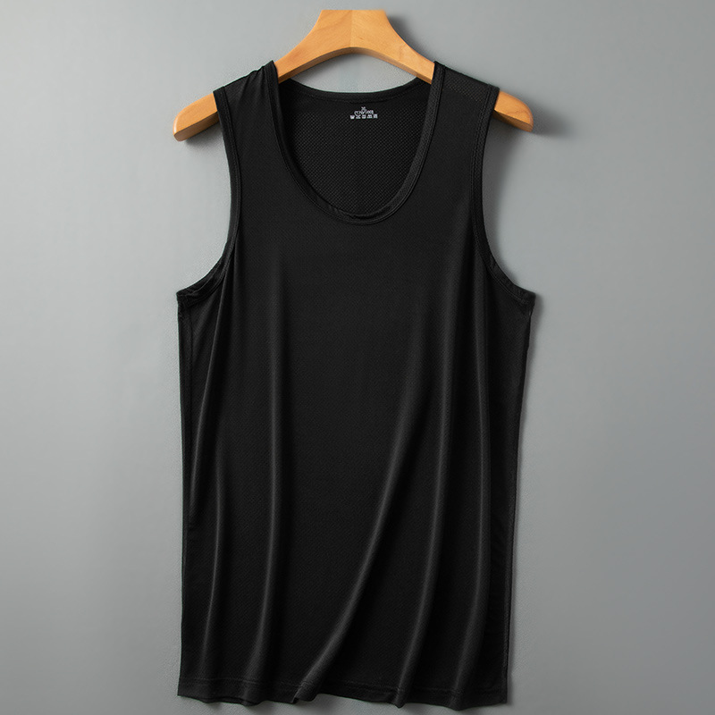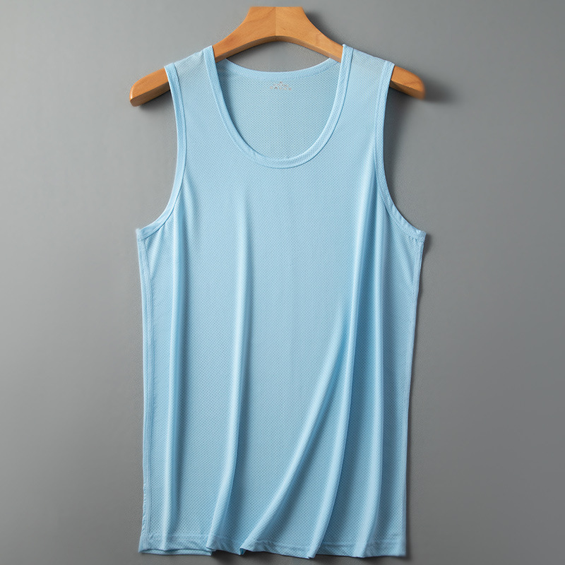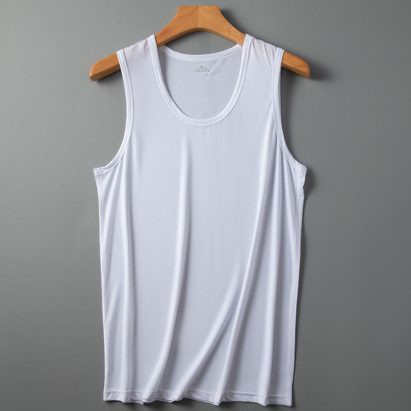 파인 메쉬 남성 조끼 스포츠 속건성 라운드 넥 조끼 스포츠 민소매 바닥 통기성 넓은 어깨 모조 실크 조끼