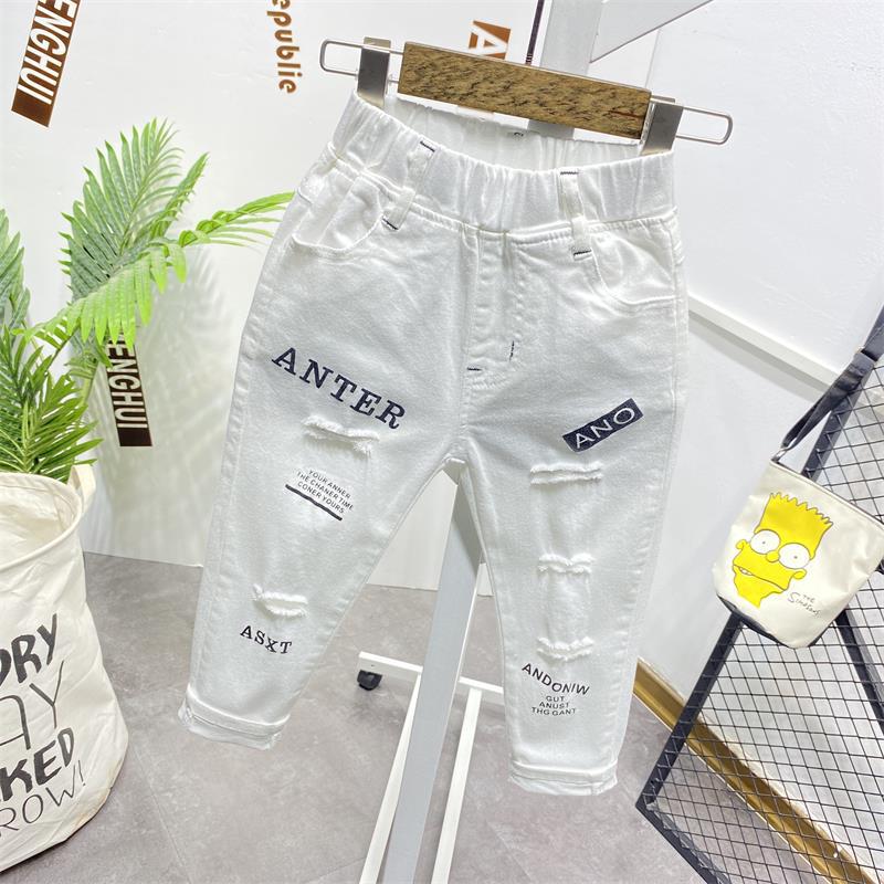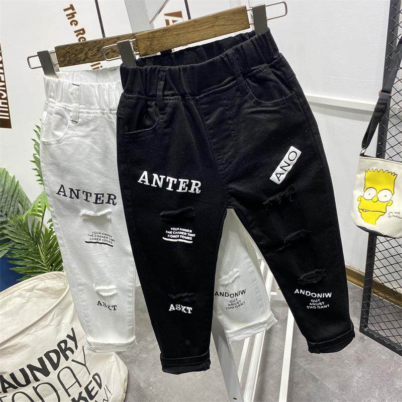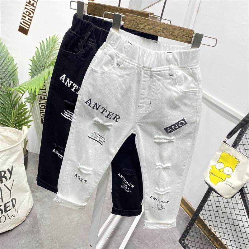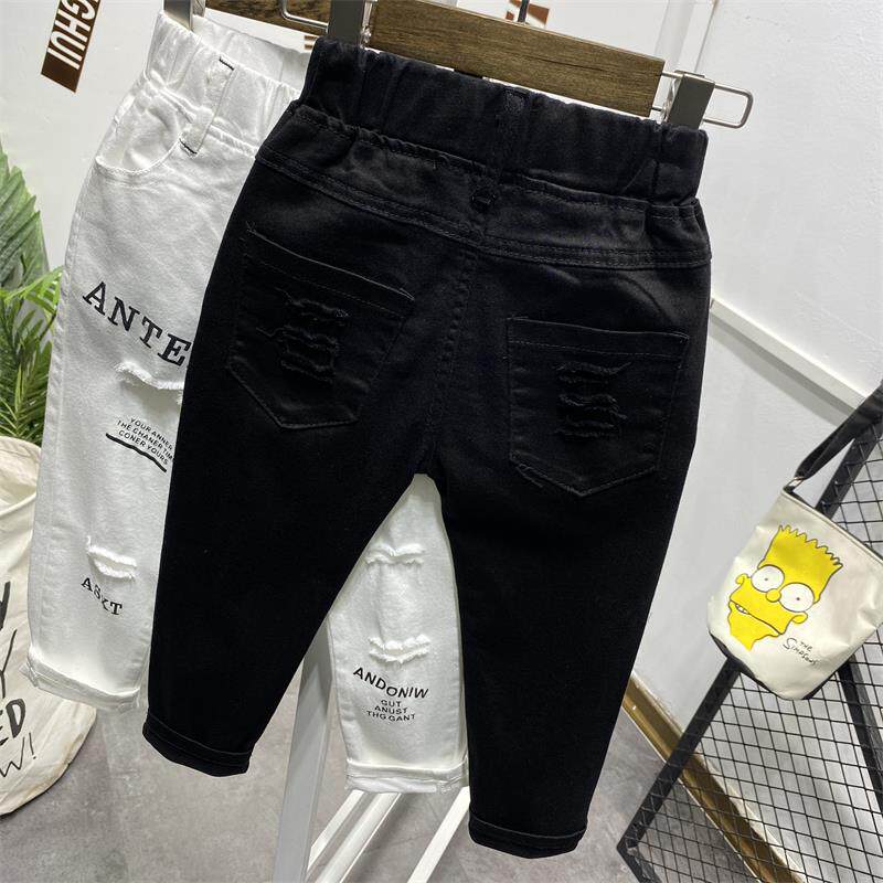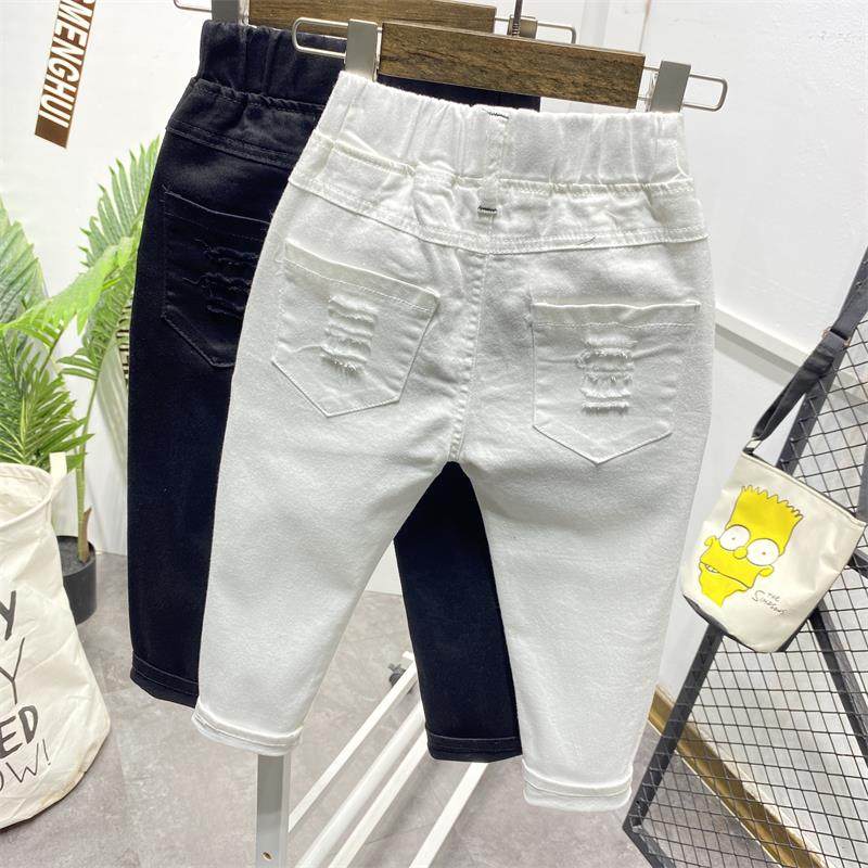 소년 구멍 흑백 단색 바지 2021 봄 여름 새로운 스트레치 데님 한국 슬림 핏 패션 바지스토어 가기