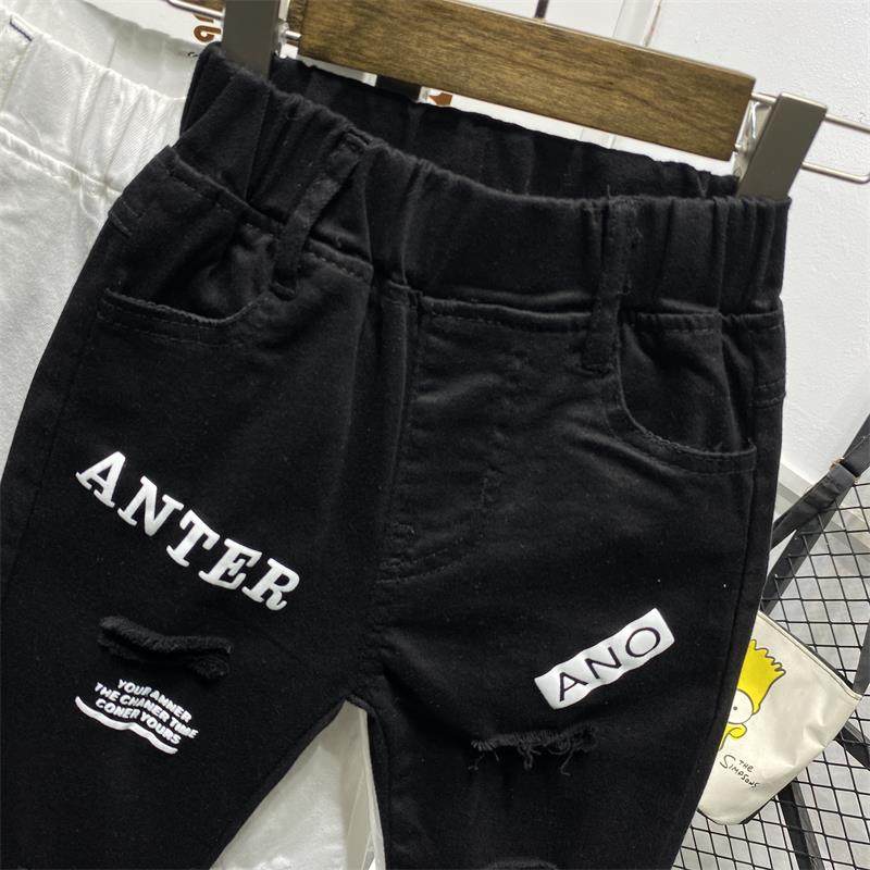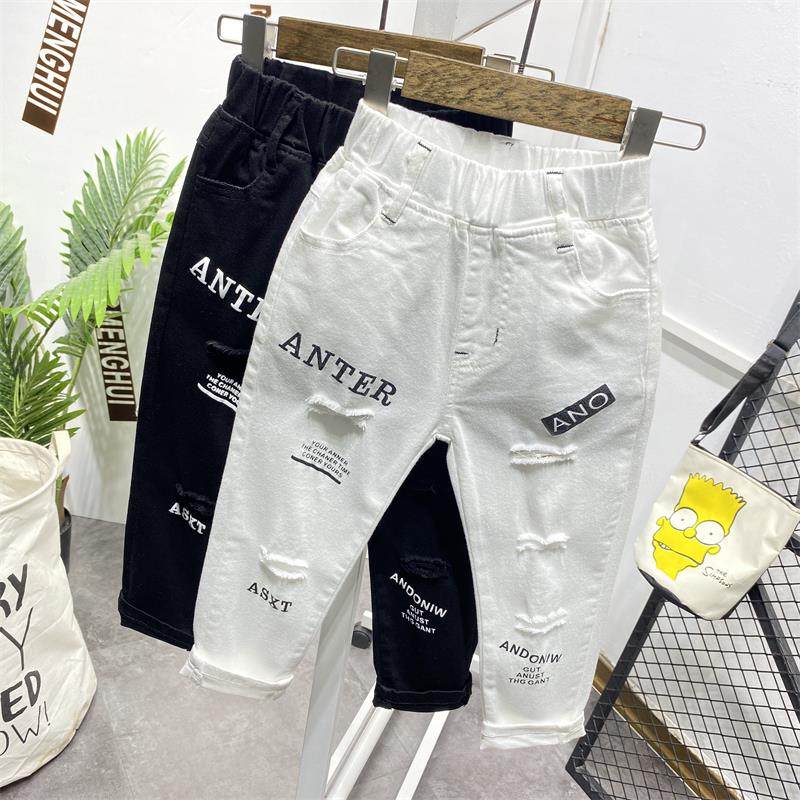 소년 구멍 흑백 단색 바지 2021 봄 여름 새로운 스트레치 데님 한국 슬림 핏 패션 바지