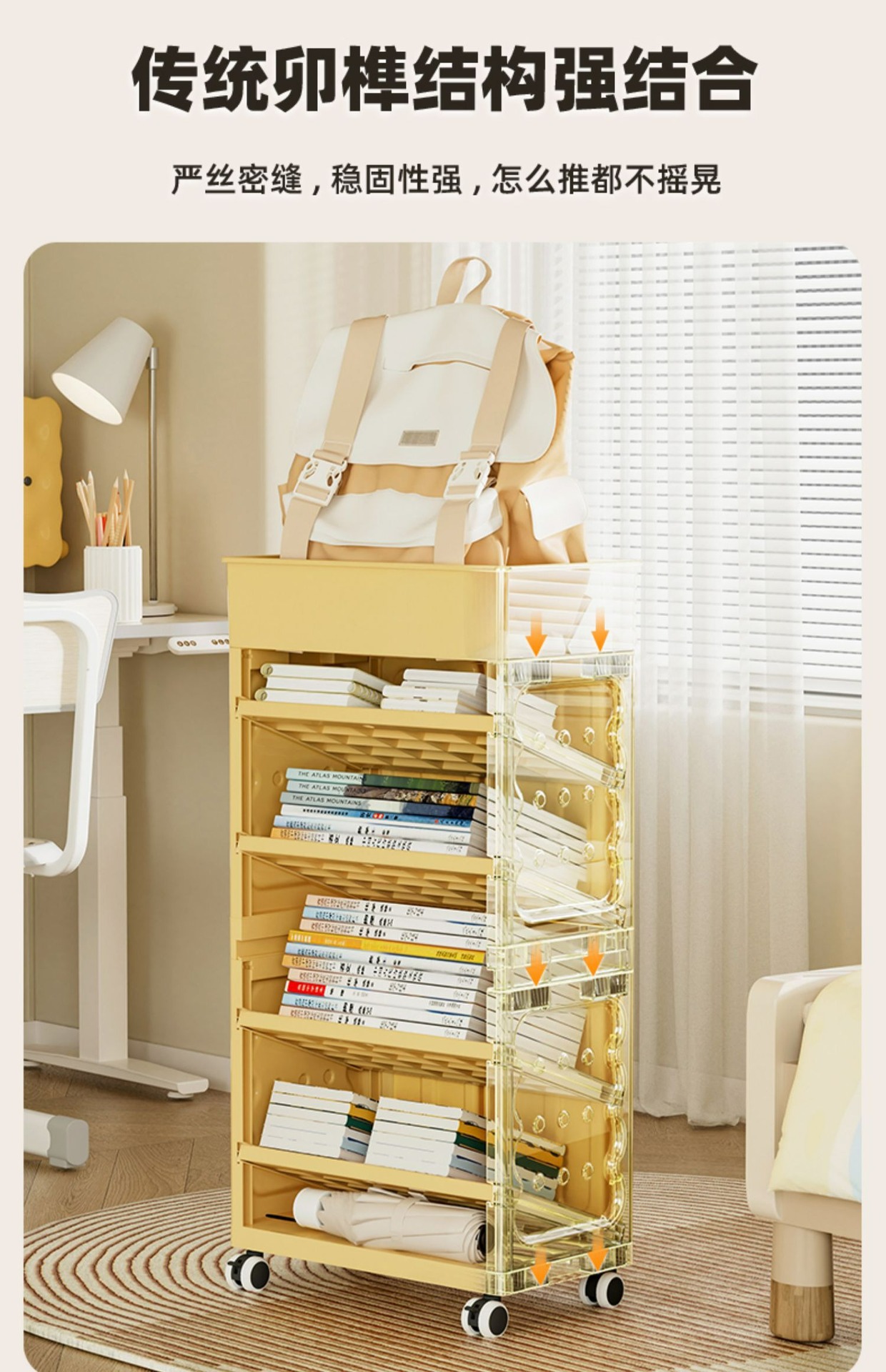 书架卧室学生家用书柜简易一体靠墙落地置物架柜子客厅收纳储物柜可移动书架绘本架儿童玩具收纳盒整理宝宝书柜落地简易卧