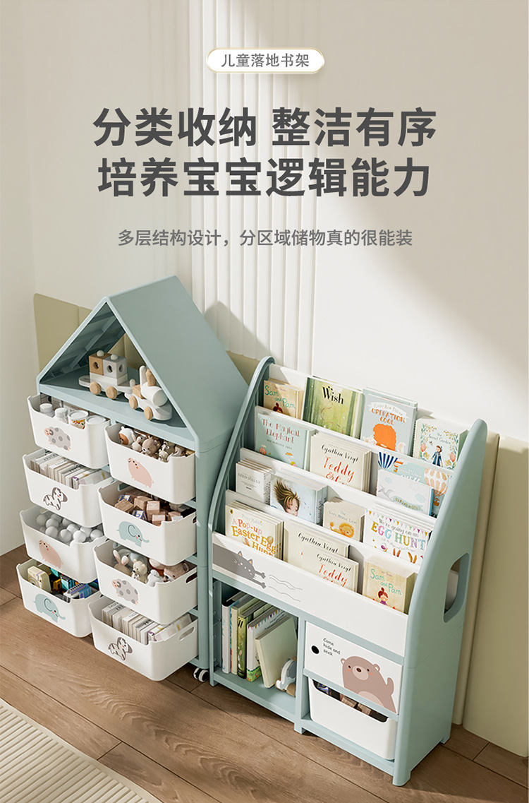 儿童书架绘本架宝宝多层玩具收纳架落地书架儿童玩具收纳架多层家用宝宝置物架玩具箱储物架组合分类整理神器儿童绘本架宿舍收纳架小型桌面置物架分层架可折叠家用阅读区书架