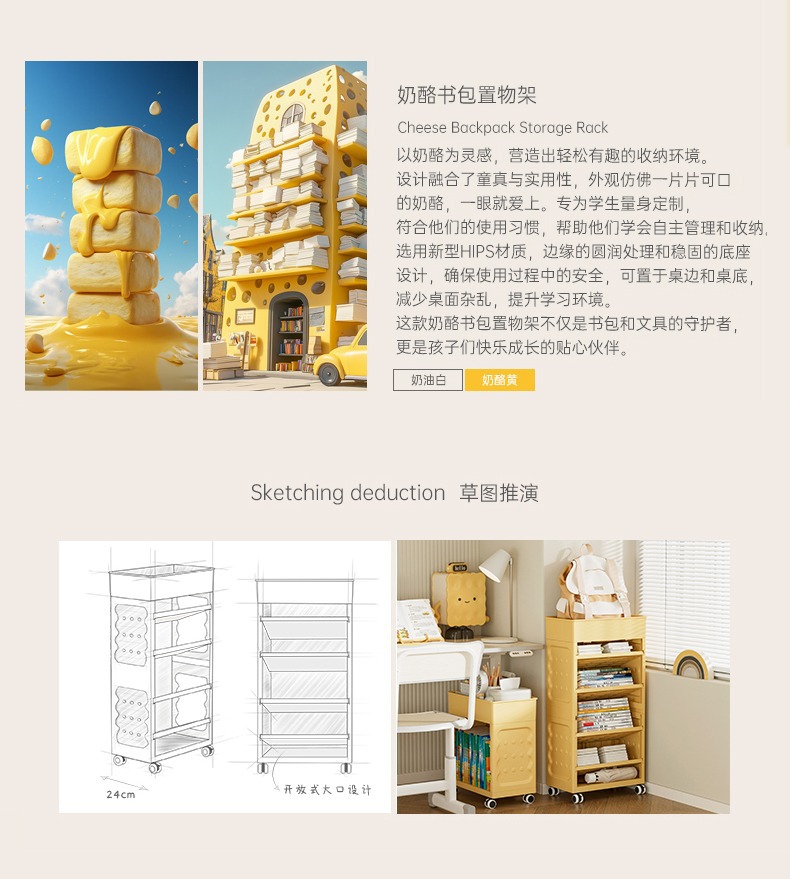 • 치즈 책가방 홀더 - 강화된 버전 [4개의 수납공간] 책을 겹겹이 쌓고 유연하게 보관할 수 있습니다.