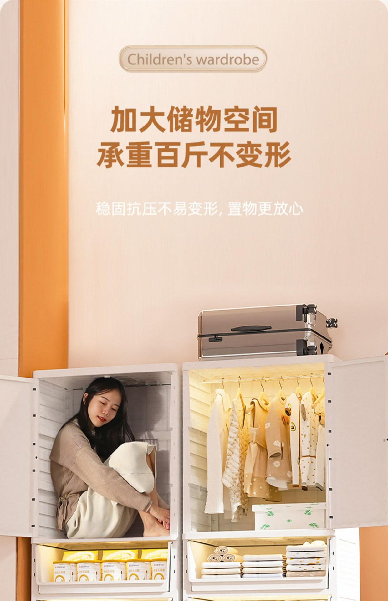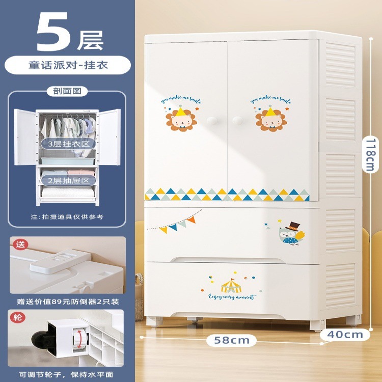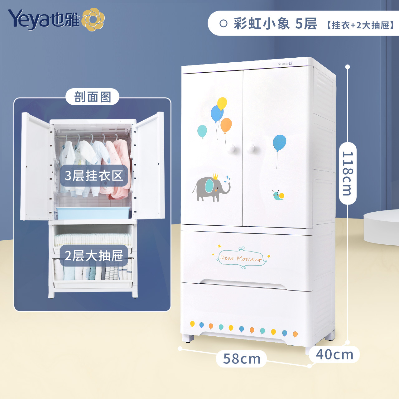 Yeya Yaya 더블 도어 로커 아기의 옷 교수형 옷장 플라스틱 두꺼운 옷 보관 마감 캐비닛